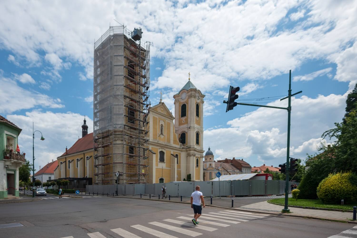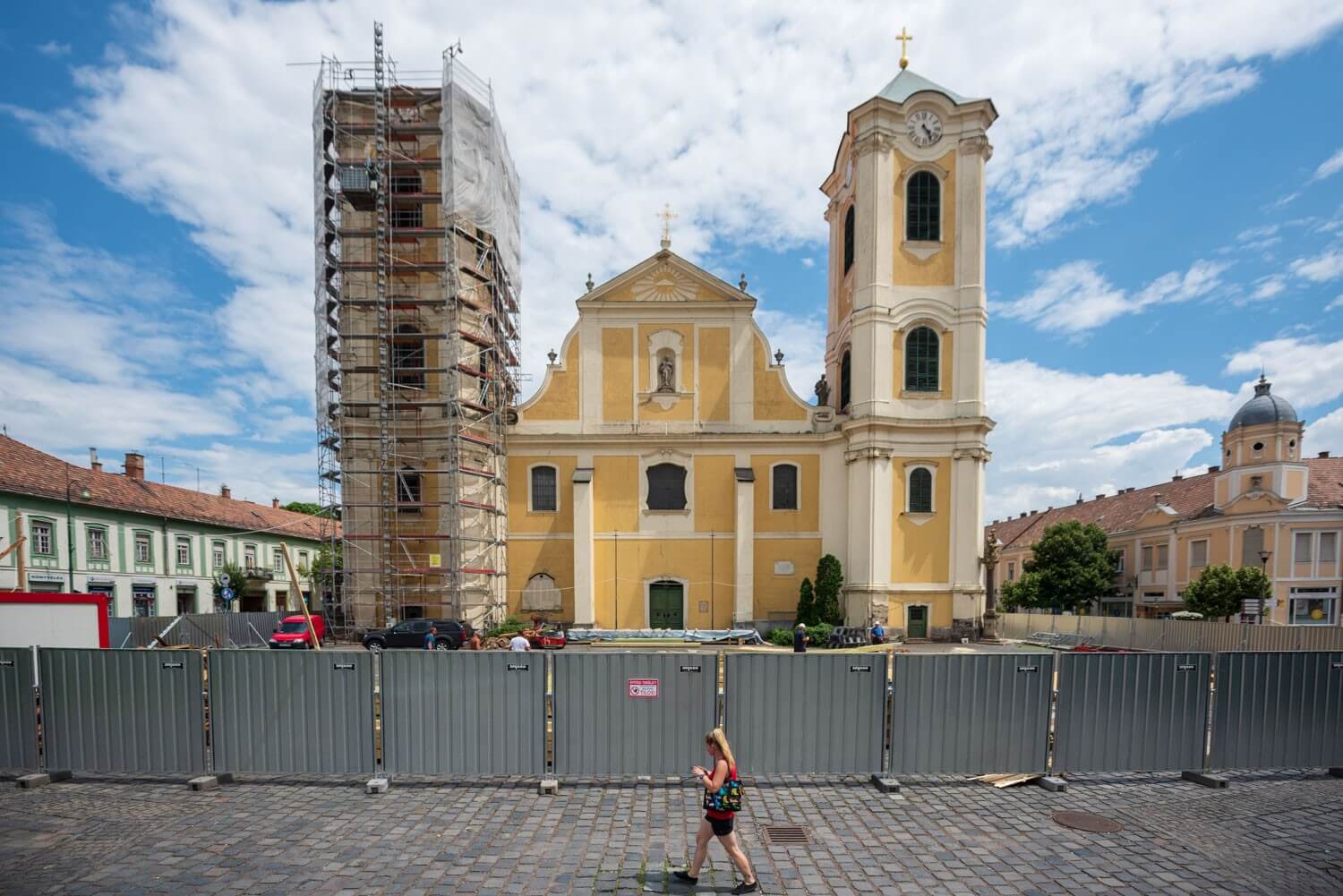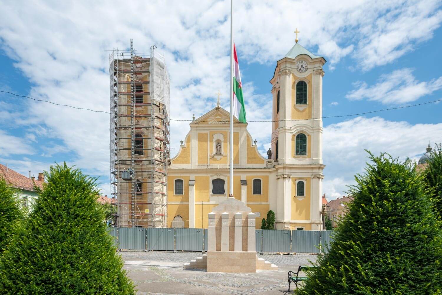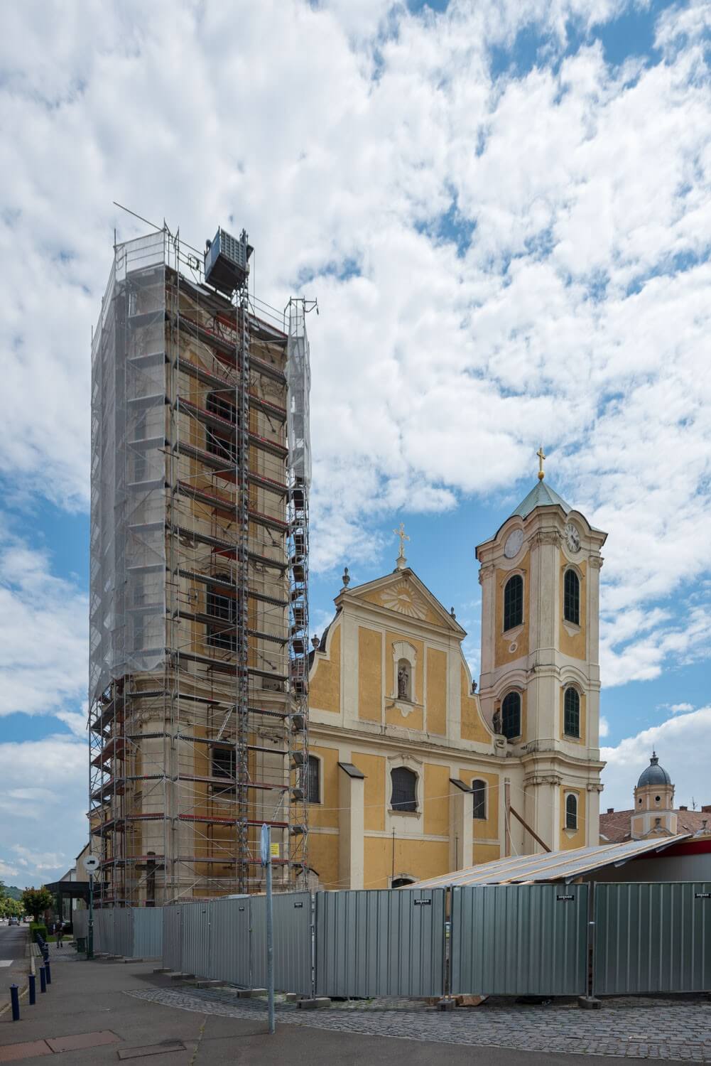 A szerdai délelőtti órákban az Euro Campus Kft. kivitelezésében megvalósuló 564 millió forintos felújítás egyik legfontosabb eleme valósult meg: várhatóan végső helyére kerül a templom új, 17 tonnás, 18 méter magas kupolája. Ezt követően a déli torony tetőszerkezetének lebontására kerül majd sor, ahol kiemelik a helyéről a harangot, melyet külső helyszínen újítanak fel.