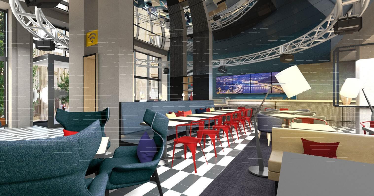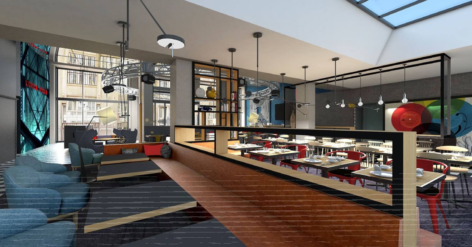 A földszinten kap helyet a reggeliző és a bár, a tágas, nagy belmagasságú lobbyban pedig egy szerény állandó kiállítást terveznek elhelyezni. Ez a ház történetét, valamint a bontásra ítélt épület tervezőjének, Medgyaszay Istvánnak az életét és munkásságát mutatja majd be, a korabeli képek és fotók segítségével. A tervezett kiállítás nem csak a hotel vendégei, hanem mindenki számára nyitott lesz.
