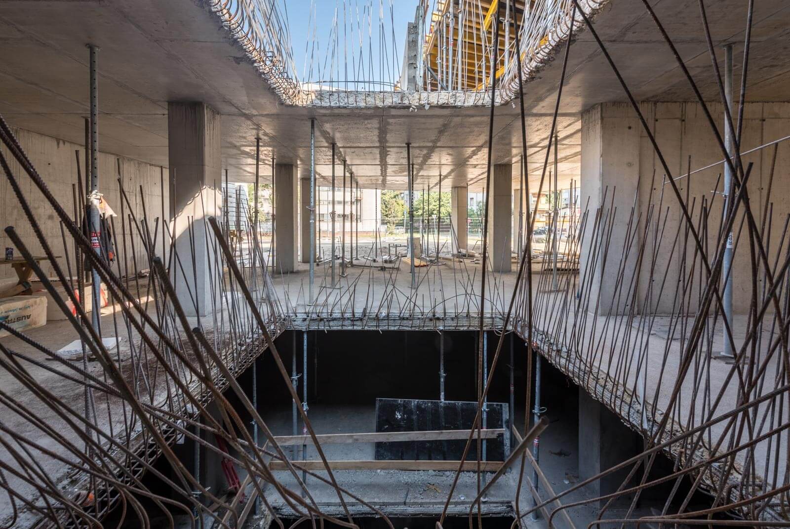 Bartus Ákos, a Spányi Partners projektmenedzsere a Magyar Építőknek elmondta, hogy a Duna közelsége miatt jelenlévő talajvíz, illetve a talaj gyengesége többletfeladatot jelent a kivitelezés során: a víztelenítés mellett egyes esetekben talajcserét kellett végezni, illetve meg kellett növelni az alaplemez alatti feltöltés rétegvastagságát is.