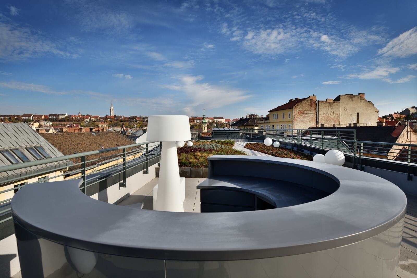 Fontos szempont volt, hogy egy ergonomikus és modern épület születhessen, amely illeszkedik a várnegyed patinás környezetéhez, építészeti adottságaihoz. Az épület jobb oldalán épülő passzázs a Mészáros utcát a Déli pályaudvarral összekötő sétány kiindulópontja lesz. Minden szinten teraszok veszik körbe az irodákat, melyek akár rendezvények megtartására is alkalmasak.