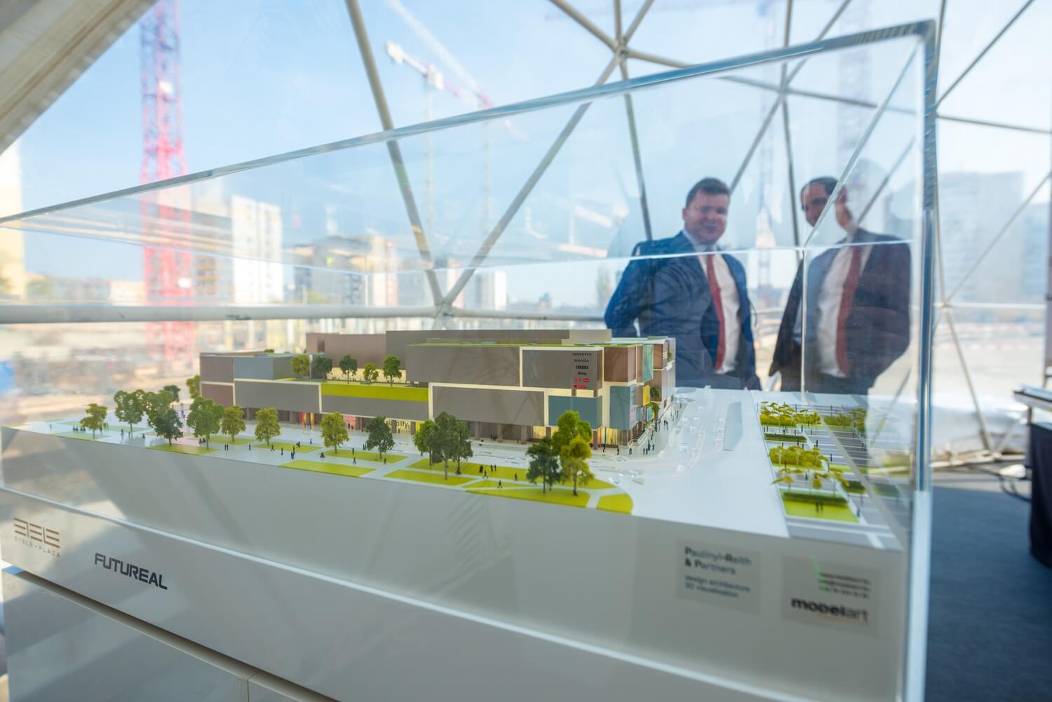 A Futureal szerdai sajtóeseményén az érdeklődők egy érintőképernyős bemutatóteremben, három dimenzióban is részletesen tanulmányozhatták a plázák legújabb generációját megtestesítő komplexumot.