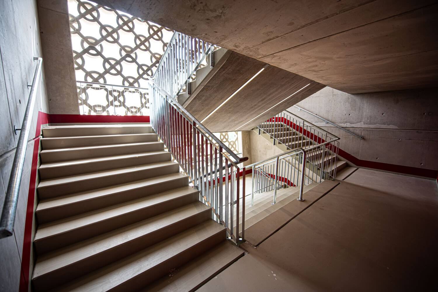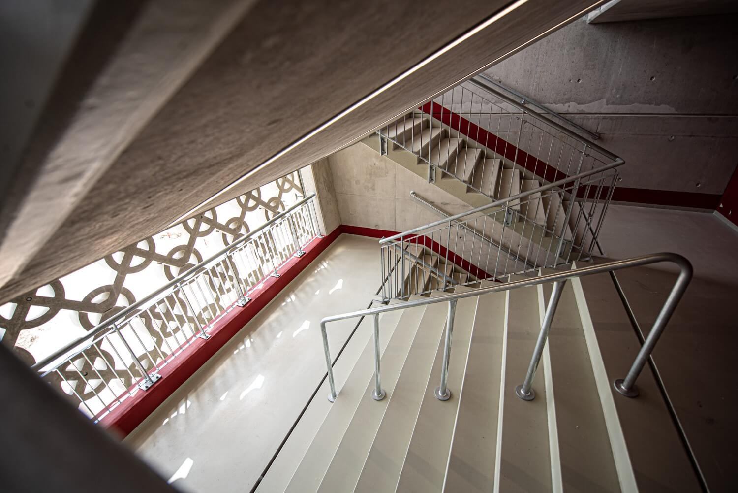 Kívülről már teljesen kész az épület, belülről pedig folynak a burkoló-, a gépészeti és elektromossági munkálatok, valamint a külső környezet végleges rendezése, a parkolóhelyek kialakítása, a kert- és útépítés és a székek elhelyezése van még hátra.