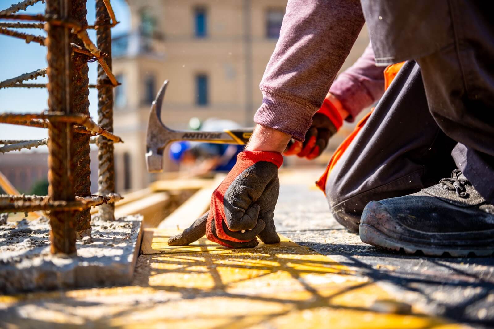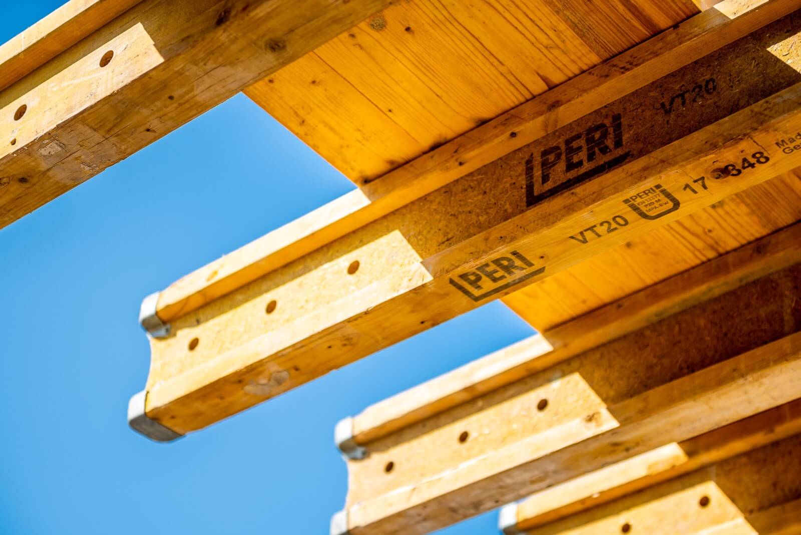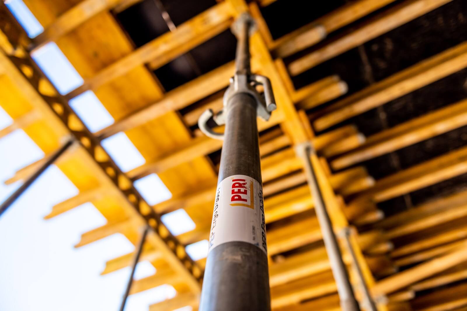 A homlokzati falaknál a szerkezetépítő kivitelező Tega-Bau Kft. biztonsági állványként alkalmazta a PERI FB munkaállványt – erről történt a külső falak vasszerelése, valamint a falzsaluzat összeszerelése. A szerkezetépítő azért választotta a PERI rendszereit, mert a falzsaluzatok összeállításánál az egyetlen kötőelemmel, a BFD kapoccsal könnyen összeszerelhető TRIO rendszer sok variációs lehetőséget biztosított. A MULTIFLEX fatartós födémzsalu rendszerrel pedig a födém alaprajzi sajátosságai optimálisan megvalósíthatók voltak.