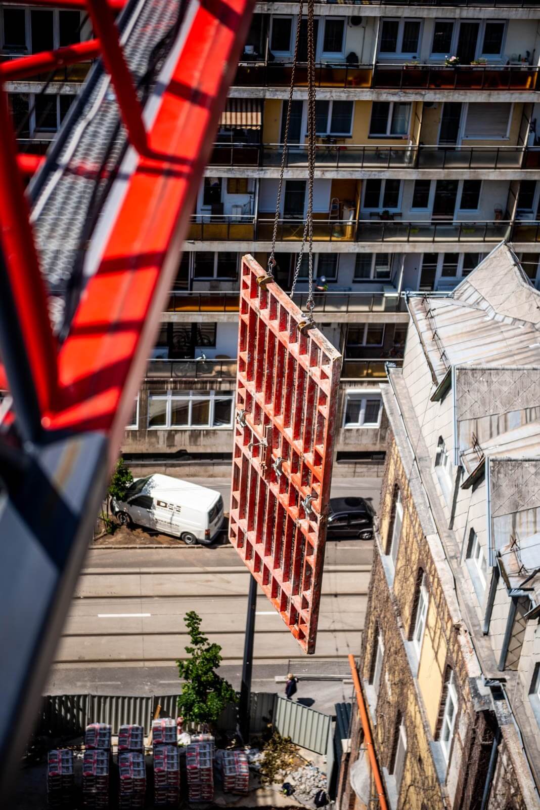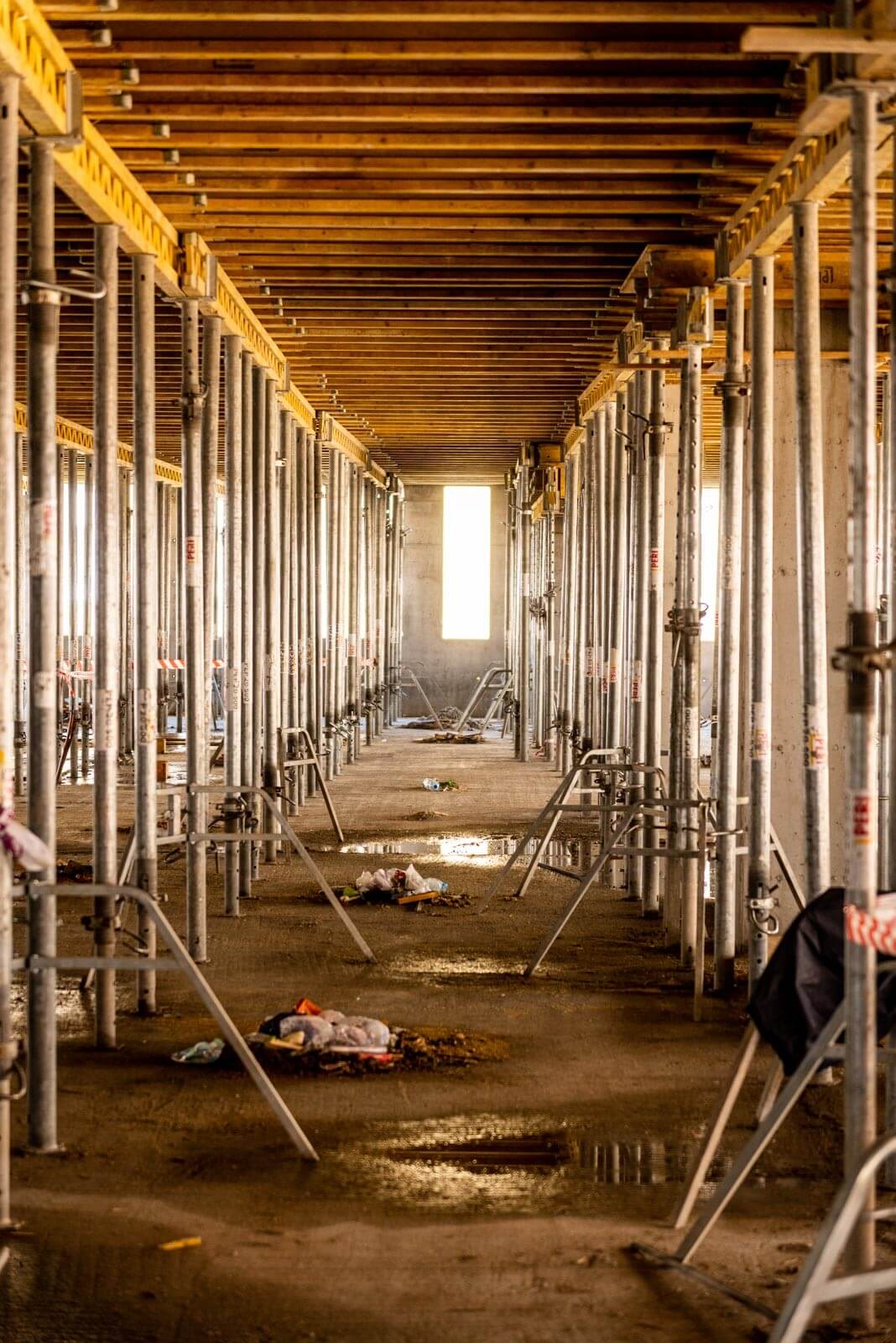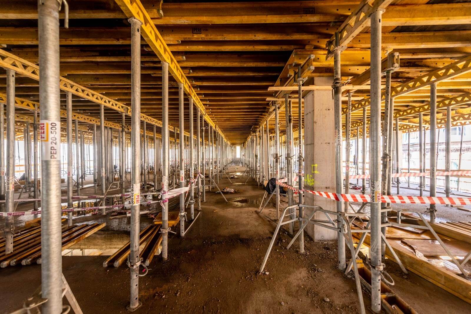 A monolitfalak PERI TRIO keretvázas falzsalu rendszerrel készültek, melyből összességében közel 40 tonna található az építkezésen. A mélygarázs 1. szintén lévő íves rámpafal PERI RUNDFLEX íves falzsaluval épült.