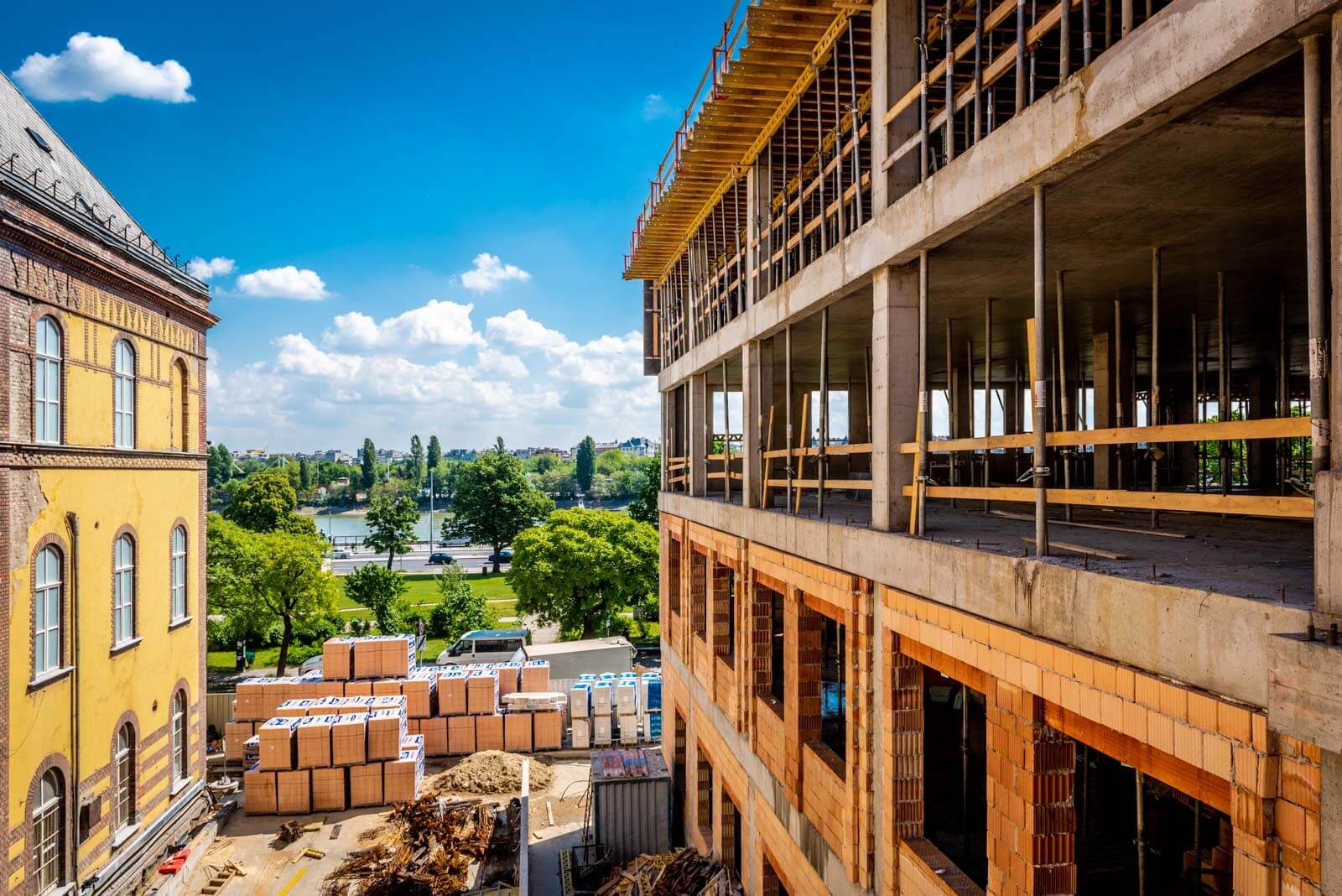 A Budai Irgalmasrendi Kórház területén épülő két új létesítmény – a hotelszárny és a központi épület kivitelezése az elsőrendű feladat a projekt során, amelyek elkészülése elengedhetetlen ahhoz, hogy a műemléki kórházépület felújítása elkezdődhessen.