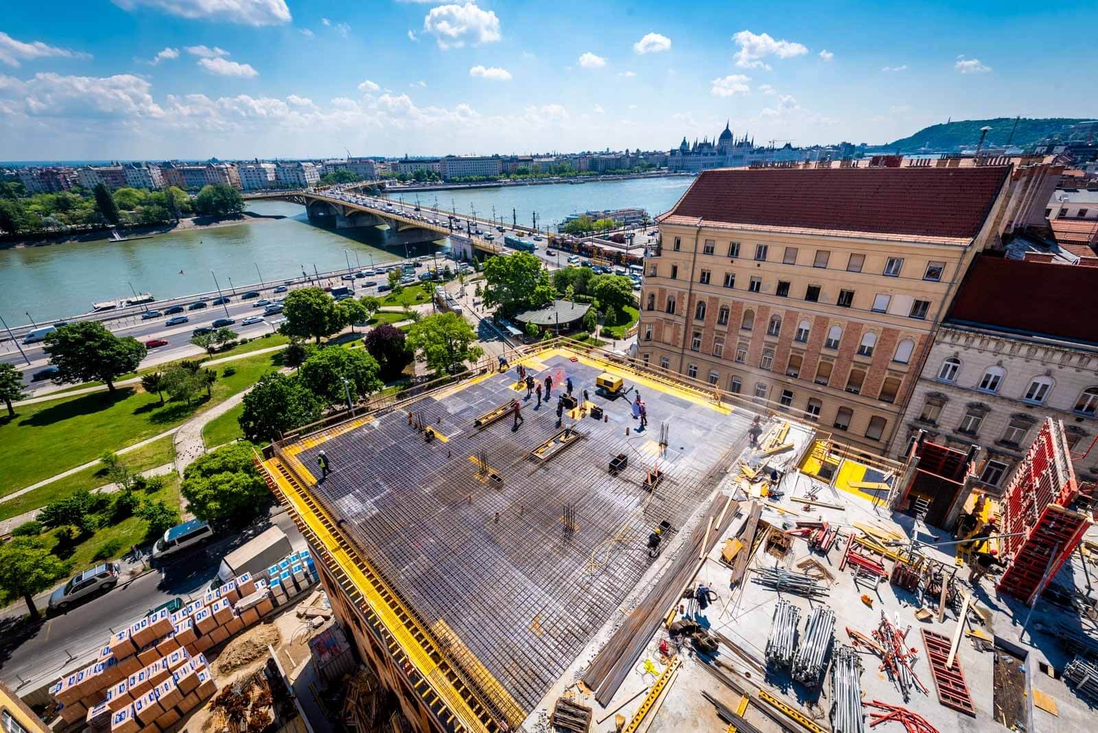 A kivitelező az egyes födémszintek zsaluzásához PERI MULTIFLEX fatartós födémzsalu-rendszert használt, PERI födémtámaszokkal. A kilenc szinten együttesen – beleértve a pinceszinteket, emeleteket és zárófödémszintet – mintegy 17 600 négyzetméternyi terület födémzsaluzása valósult meg.
