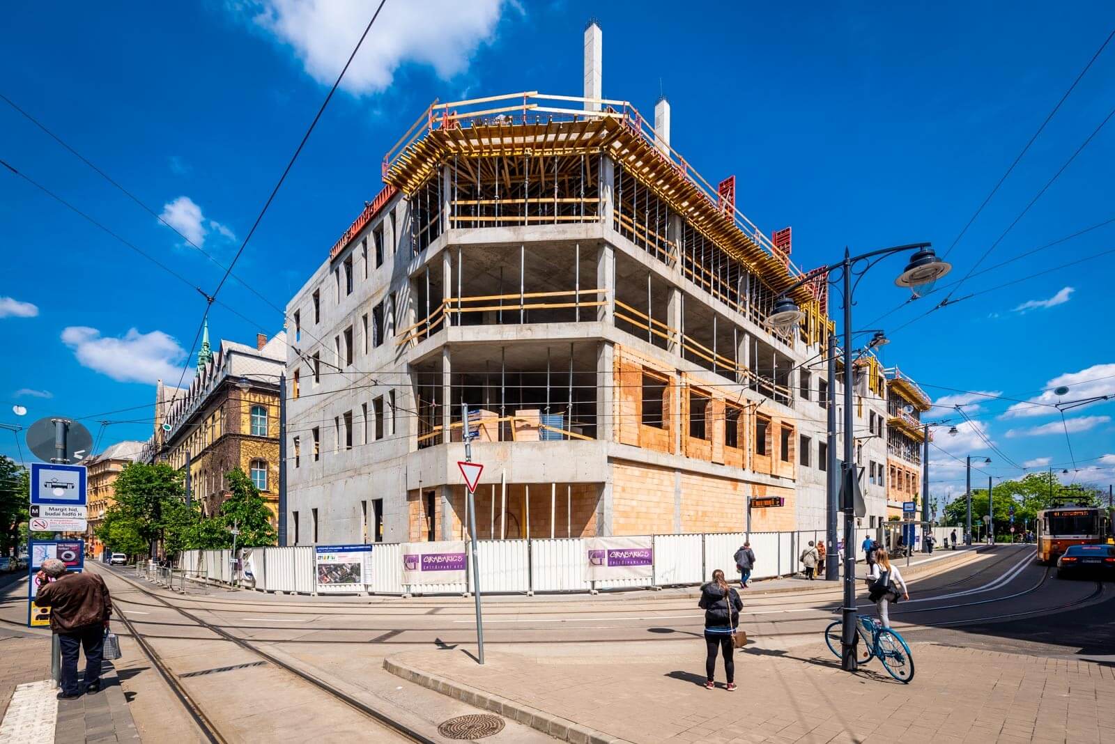 A kivitelezés további kihívásai közé tartozik az is, hogy egy nagyon szűkös területen folyik a munkavégzés, ugyanis az építkezési területet minden oldalról utcák, lakóépületek és villamosvonalak veszik körbe. Ebből kifolyólag a daru vagy minden olyan eszköz, ami nagy magasságot igényel, az megoldandó kihívást jelent – a hely adottságai behatárolják a munkaterületet, és ez nagyban meghatározza a munkavégzés eszközeit és folyamatait.