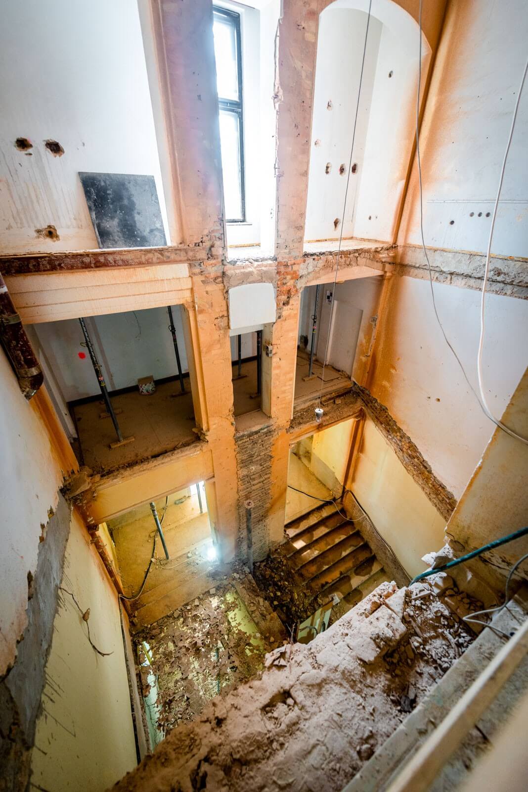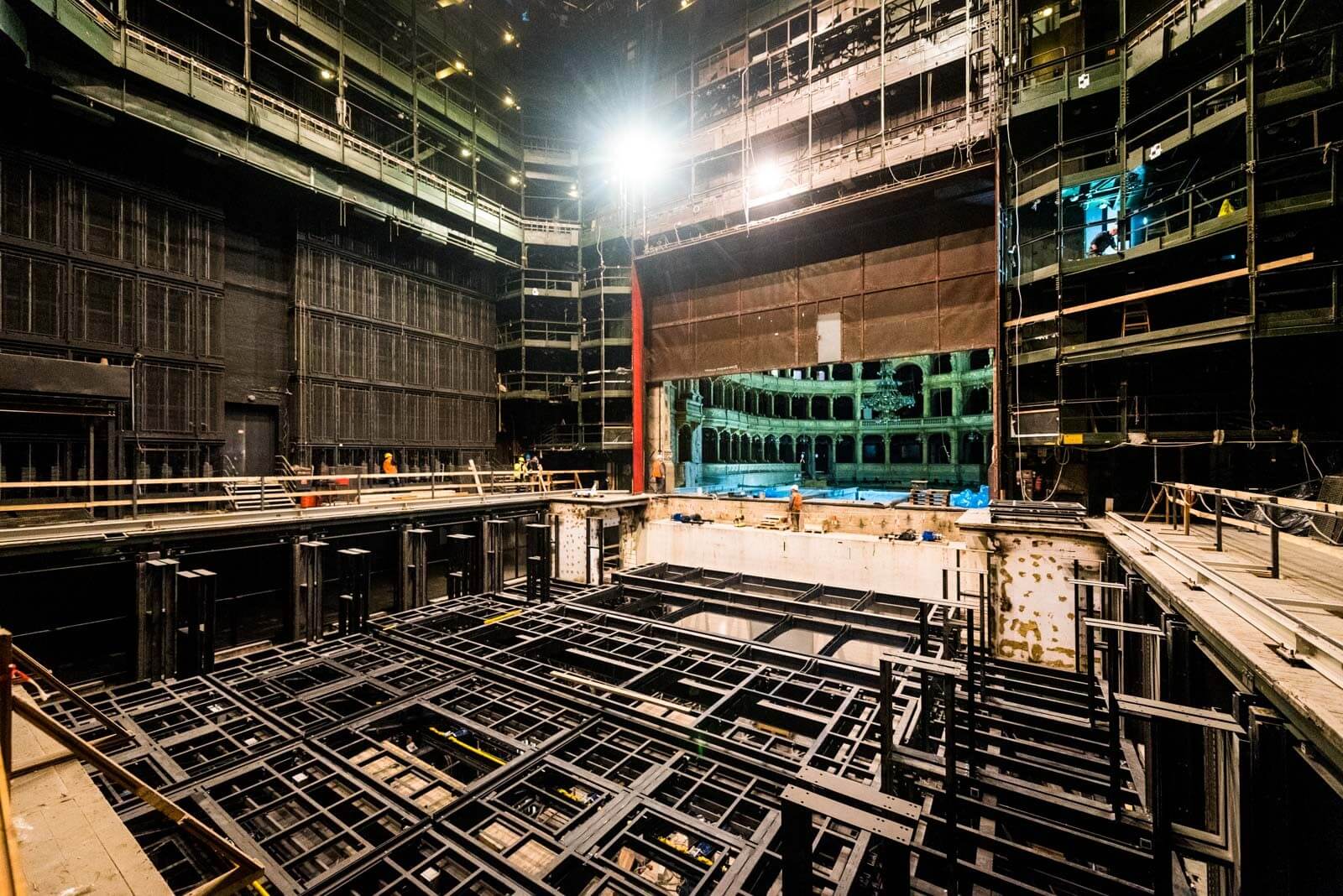 A pincében a gépészeti és villamossági kivitelezések már előrehaladott állapotban vannak, az emeleti részeken is elkezdődtek a gépészet és villamosság munkálatai. Ezen kívül folyamatban van a Dalszínház utcai karzatlépcső bontása is.