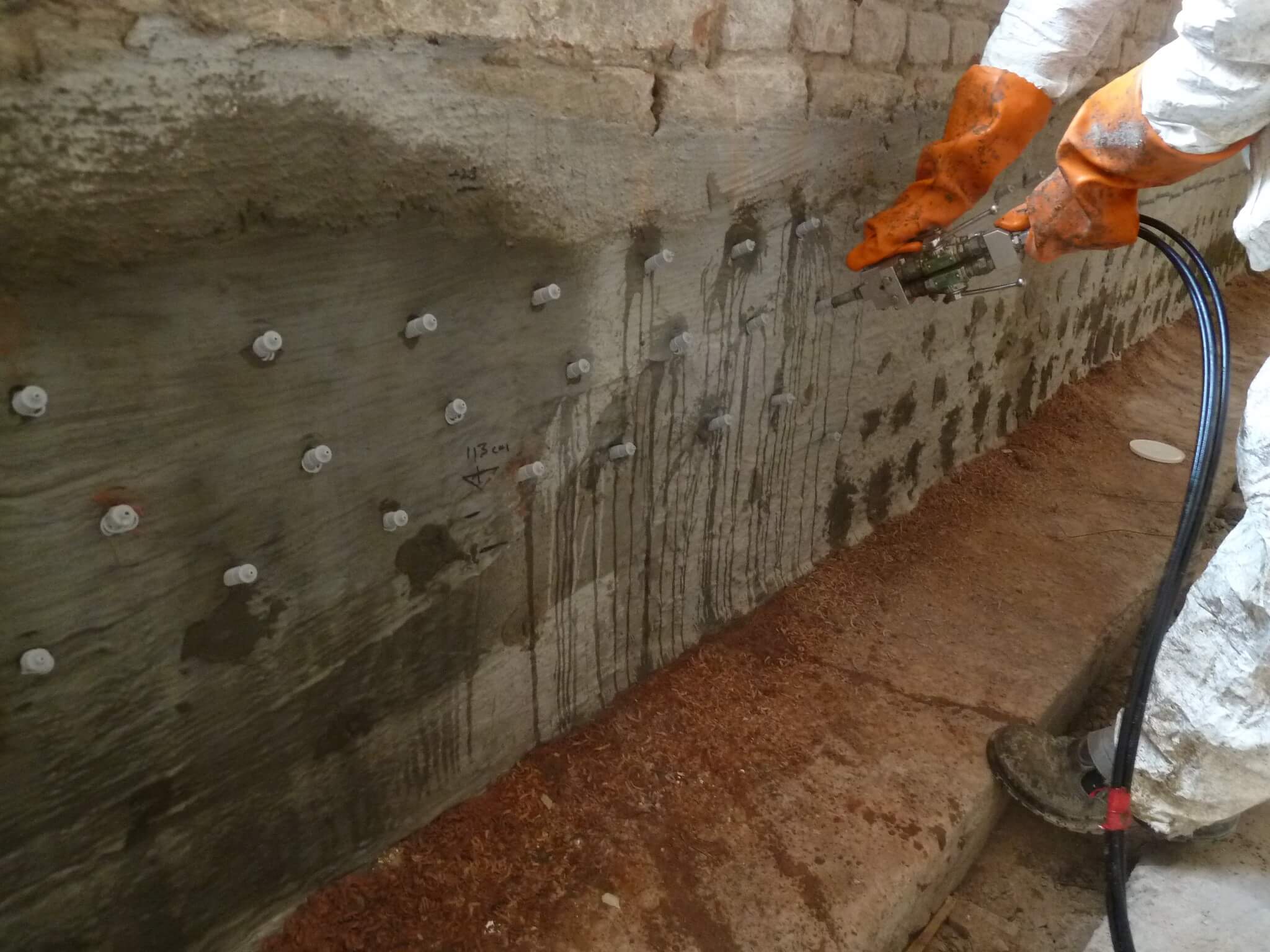 Az épület méretéből adódóan a legnagyobb kihívást a pincefalak szellőztetése, a fugák aprólékos megtisztítása, valamint a vakolat leverése jelentette.
