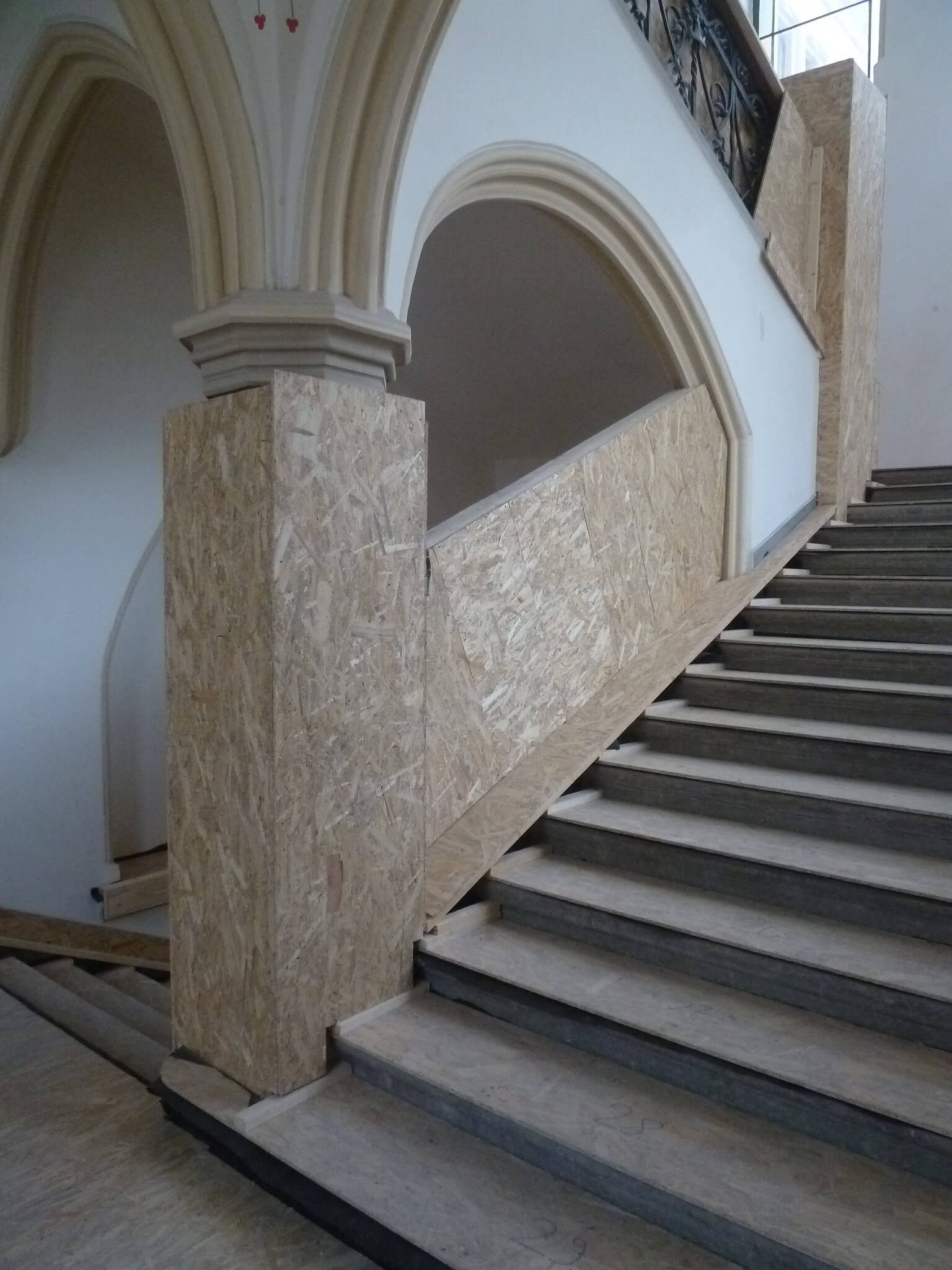 Az utólag beépített, de ma már korszerűtlen lifteket elbontják, ezzel párhuzamosan pedig a lépcsőházak értékes díszítései, mint például a korlátok és oszlopfők gondos védelmet kapnak, hogy a további munkálatok során se sérüljenek. Ezzel párhuzamosan történik az archaikus belső terek rekonstrukciós tervezése, amelynek nagyobb része már elkészült, és hamarosan a nagyközönség is láthat részleteket a tervekből.