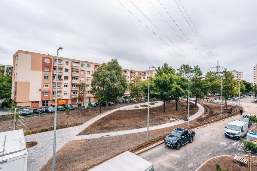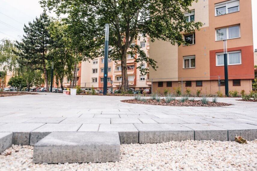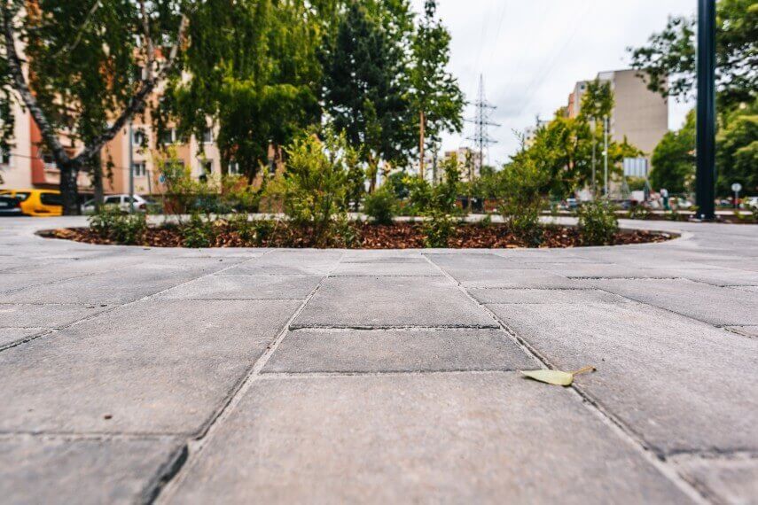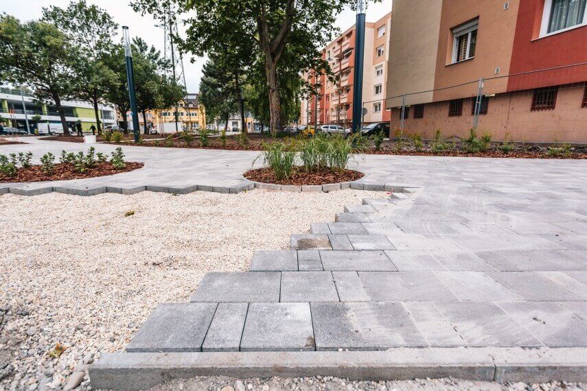 Hozzátette azt is, hogy a térkőbe elmozdulásbiztos távtartók vannak beépítve, emiatt jóval stabilabb a burkolat.