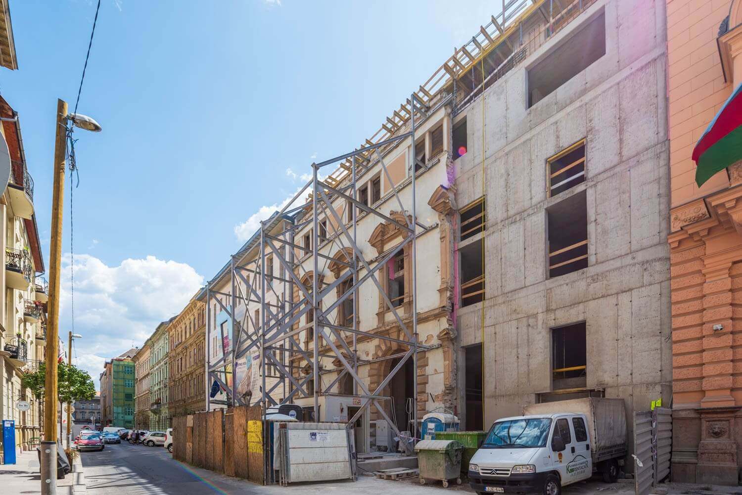 „A zártsorú beépítés miatt pakett falakkal alakítottuk ki a szomszédos épületek melletti határoló falakat. A tetőszerkezet pedig vasbetonból készül úgynevezett „koporsó” födém” – ismertette Vadász Krisztián.
