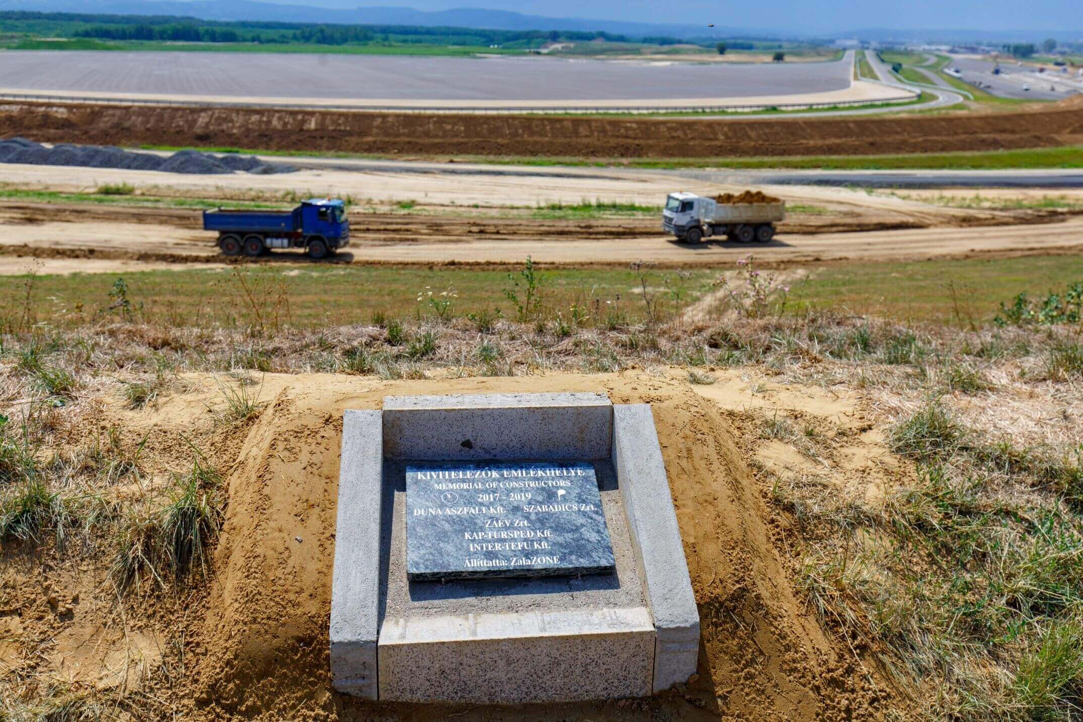 A rendezvényen a gránitból készült táblát a tesztpálya területén kitermelt földből épült domb tetején helyezték el, ahol később kilátóhelyet alakítanak ki. Az emléktáblán szereplő cégek vezetői Palkovics László innovációs és technológiai miniszterrel és Vigh László miniszteri biztossal együtt vettek részt az eseményen: a Duna Aszfalttot Varga Antal ügyvezető, a Szabadics Zrt.-t Szabadics Zoltán elnök, a ZÁÉV-et pedig Peresztegi Imre vezérigazgató képviselte. Szintén megörökítették még a táblán a Kap-Tursped Kft., valamint az Inter-Tefu Kft. munkáját is.
