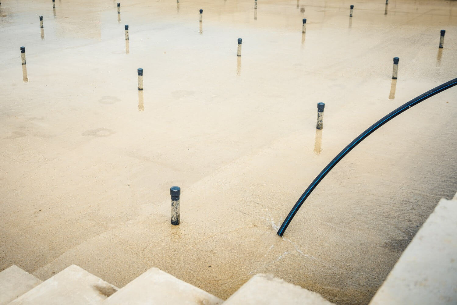 A helyszínen megtudtuk, hogy már szerkezetkész a 25 méteres külső medence, illetve elindult a fúrása egy 1100 méter mély, 45 fokos termálvizet adó új kútnak. A sajtóbejáráson az is kiderült, hogy a fejlesztés ütemterv szerint halad, sőt kissé meg is előzi azt, mert megkezdődött a strand régi bejárati épületének a rekonstrukciója.