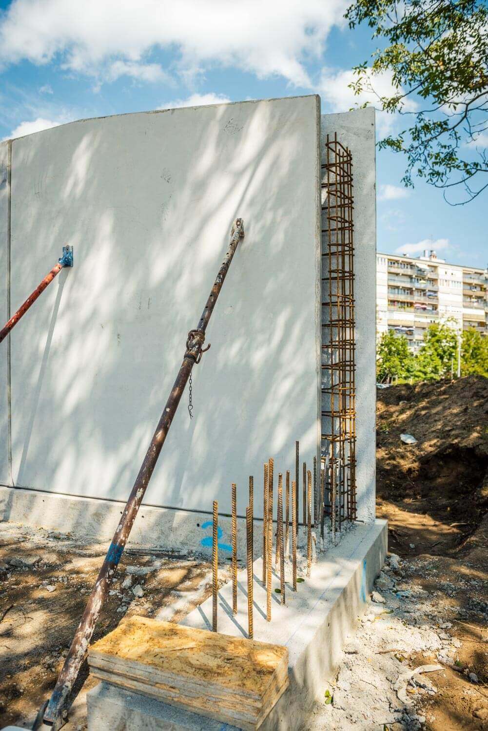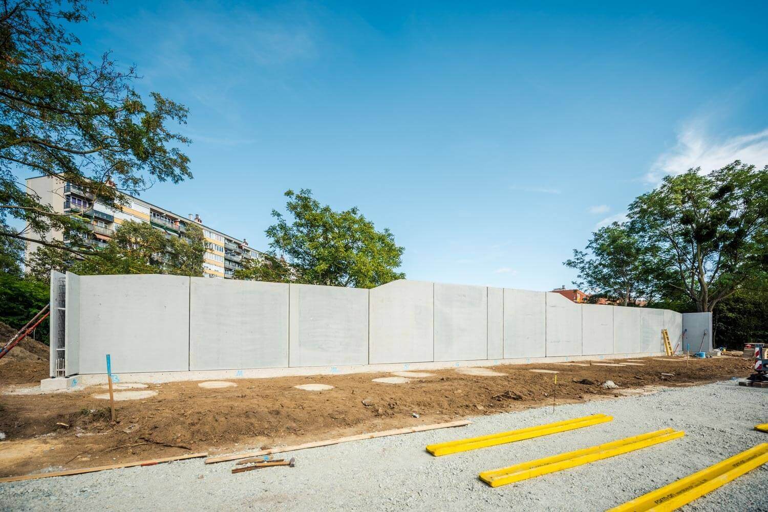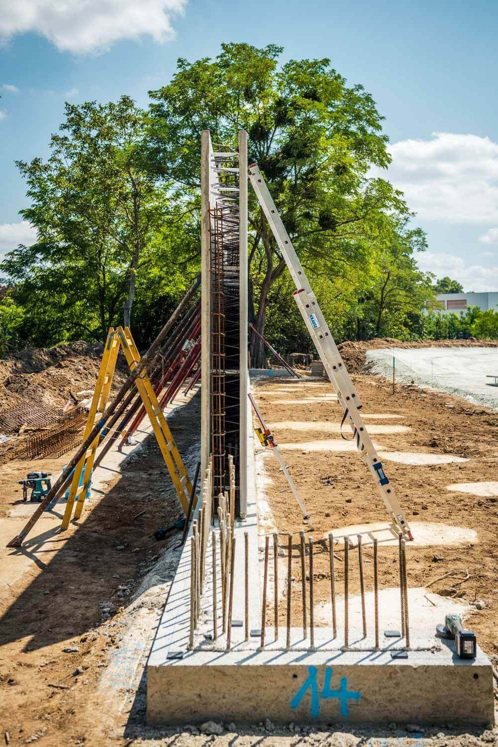 Végezetül a mászófal kapaszkodó elemeket ezekre a falakra fogják majd rögzíteni dübelek segítségével. Az U alakú fal hosszúsága 34 méter, amin 3,5 méter magasra mászhatnak majd a sportolni vágyók.
