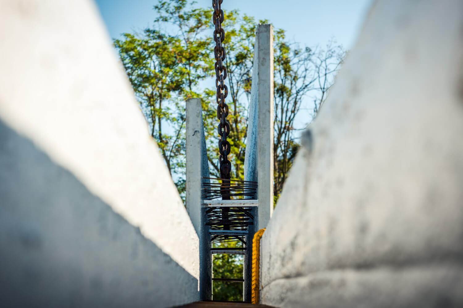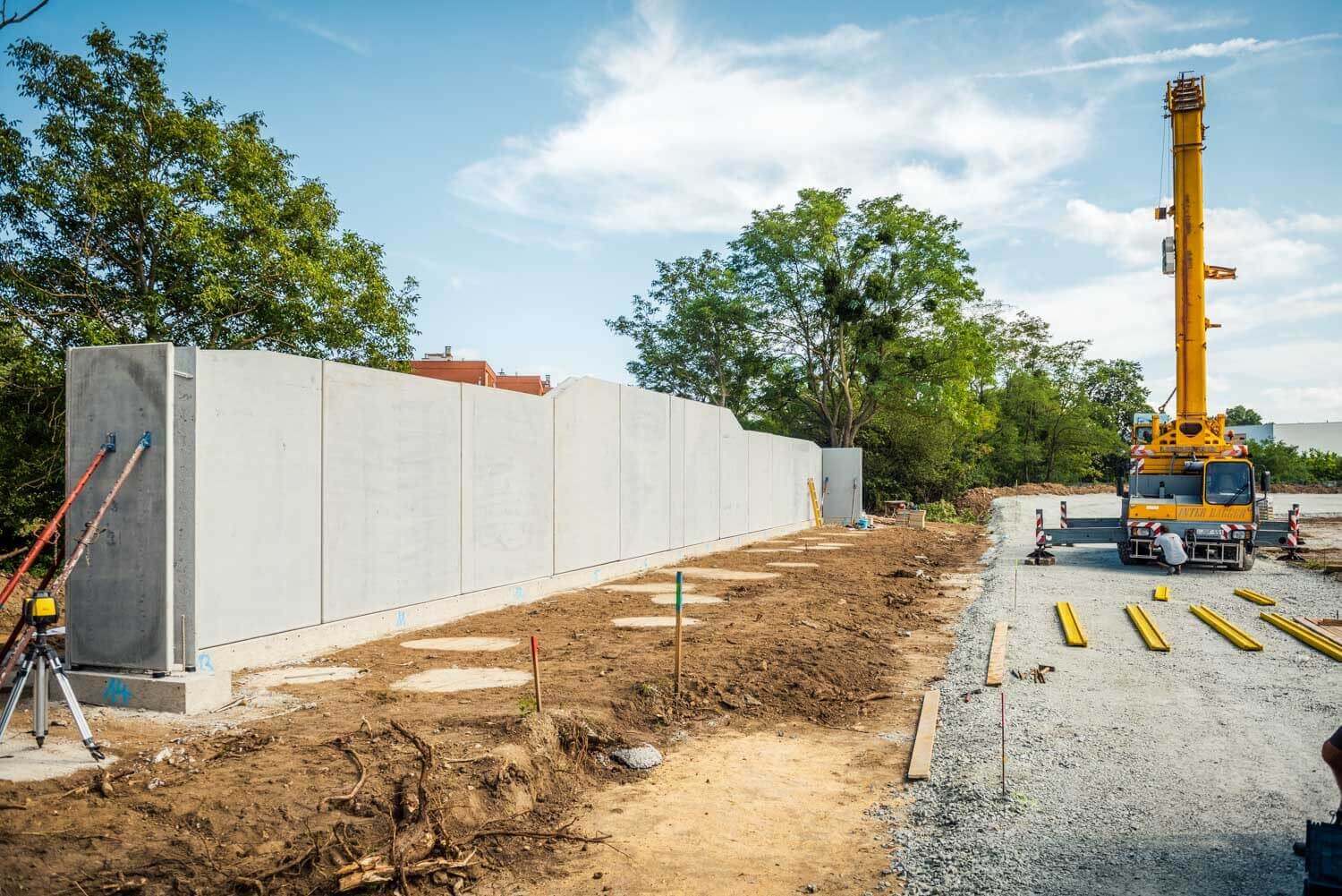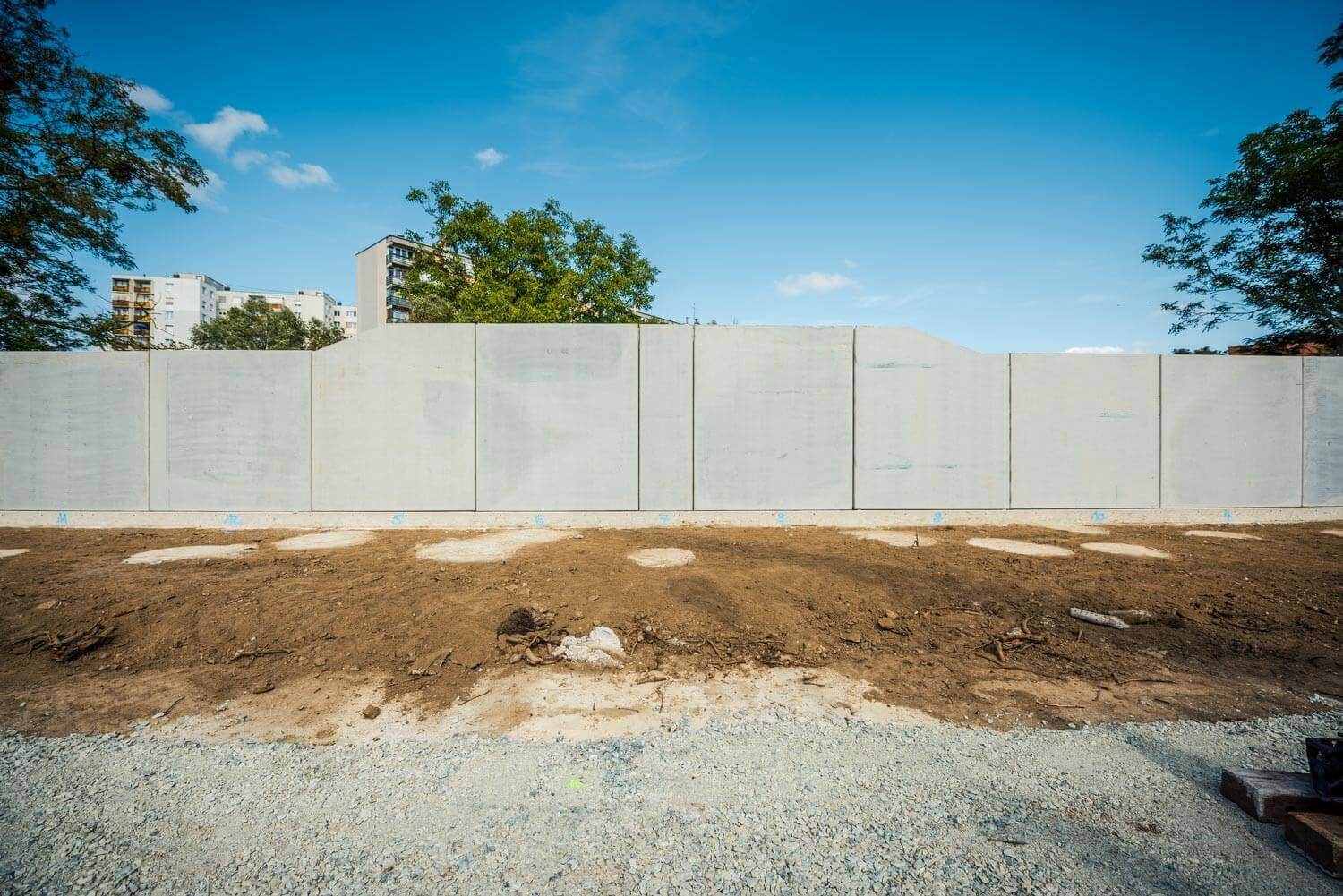 Végezetül a mászófal kapaszkodó elemeket ezekre a falakra fogják majd rögzíteni dübelek segítségével. Az U alakú fal hosszúsága 34 méter, amin 3,5 méter magasra mászhatnak majd a sportolni vágyók.
