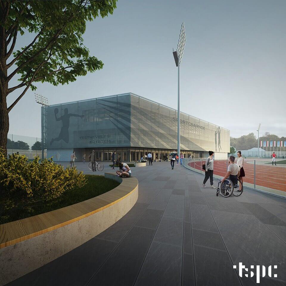 A generáltervező a másik campusrészt is tervező TSPC Kft. Az egyetem igényeinek megfelelően a területen kialakítanak egy nyolc sávos és 400 méteres szabadtéri atlétikapályát egy 360 fős lelátóval felszerelve.