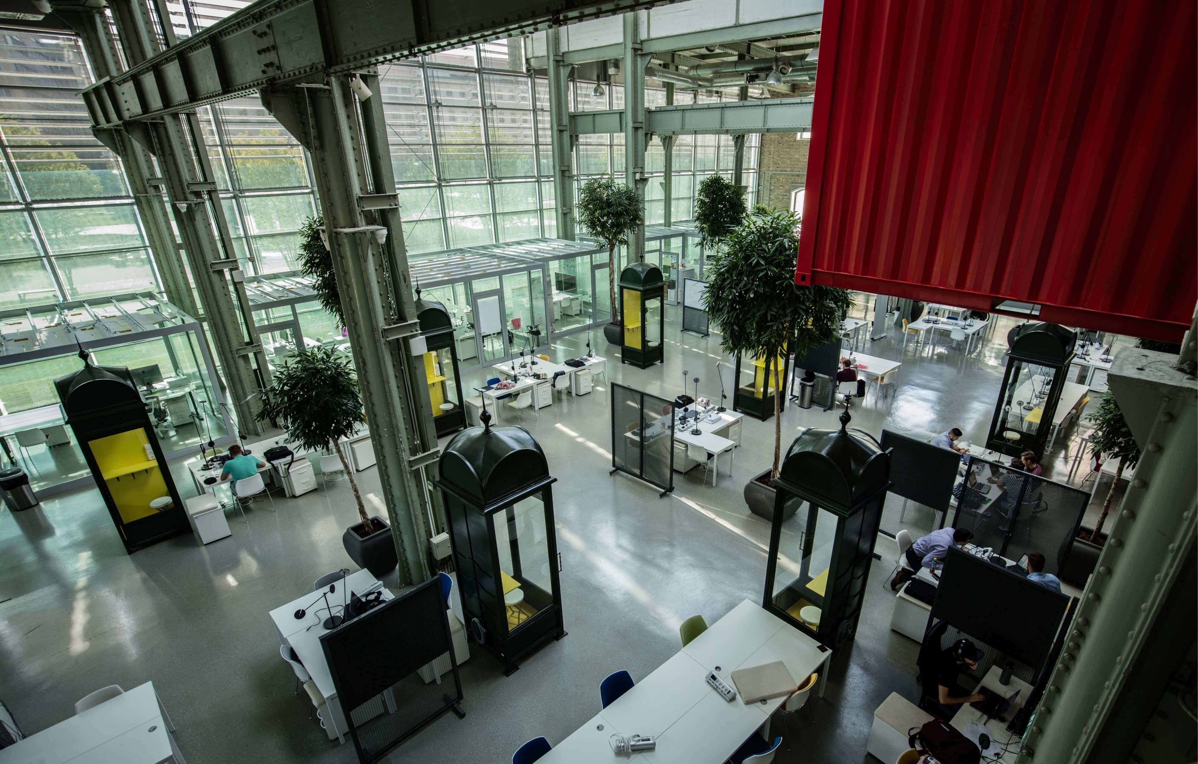 A helyenként több mint 10 méteres belmagassággal rendelkező óriási térben több százan fognak egy légtérben dolgozni, mégis úgy vannak elosztva a különböző funkciójú terek, hogy nem lesz nyomasztó az összezártság.