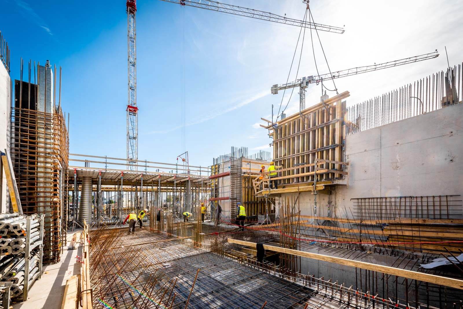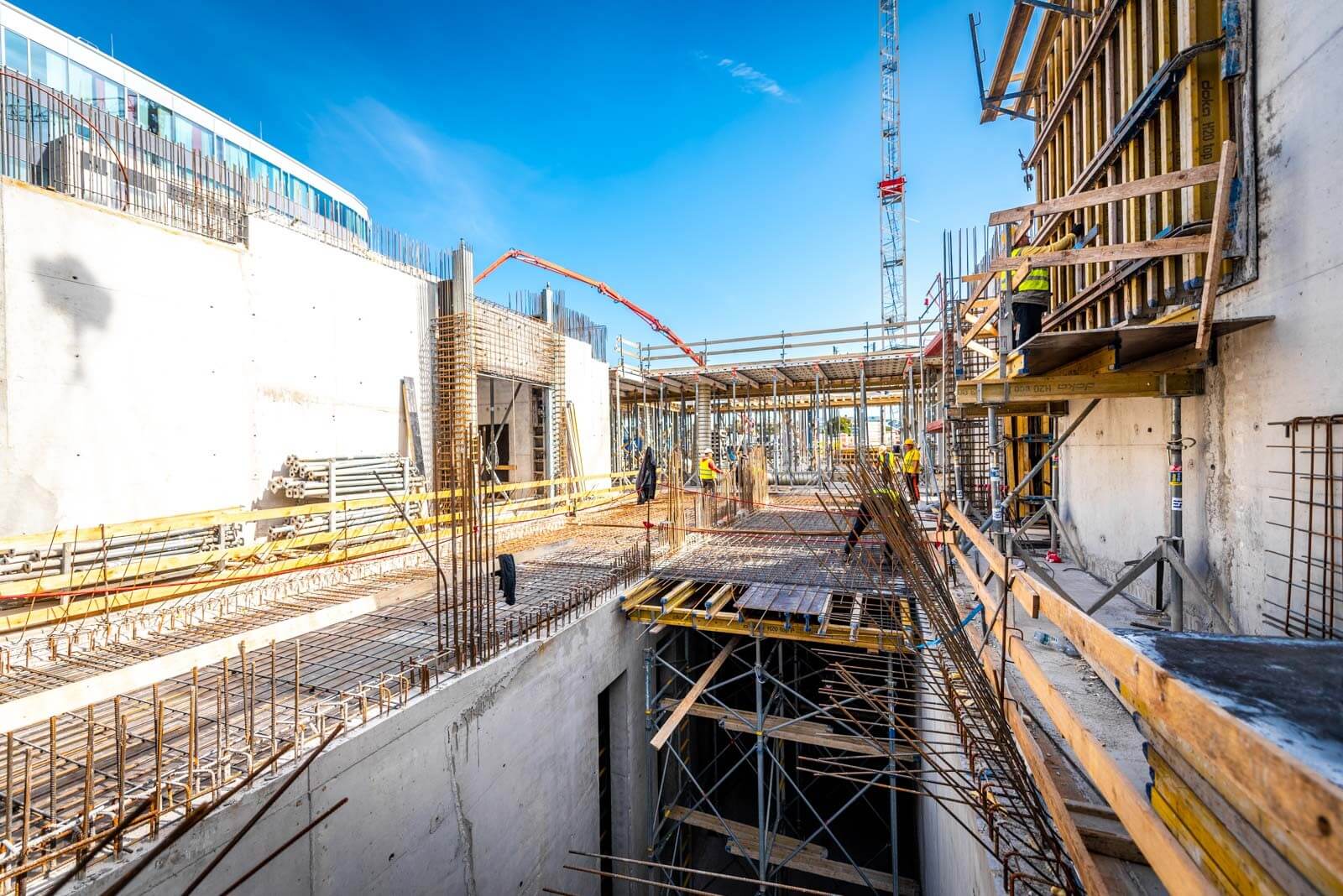 Az Épszerk-Pannónia Invest Kft. a szerkezetépítés során több munkafolyamatot is saját gyártású elemekkel valósít meg. A mélyépítés után a szerkezetépítés az alaplemez-építéssel indult, jelenleg pedig a földszinti függőleges szerkezetek – a falak és pillérek – építésének befejezése, valamint a födém zsaluzása, vasszerelése és betonozása zajlik. Az aktuális munkálatok része az előregyártott mellvédfalak elhelyezése is.