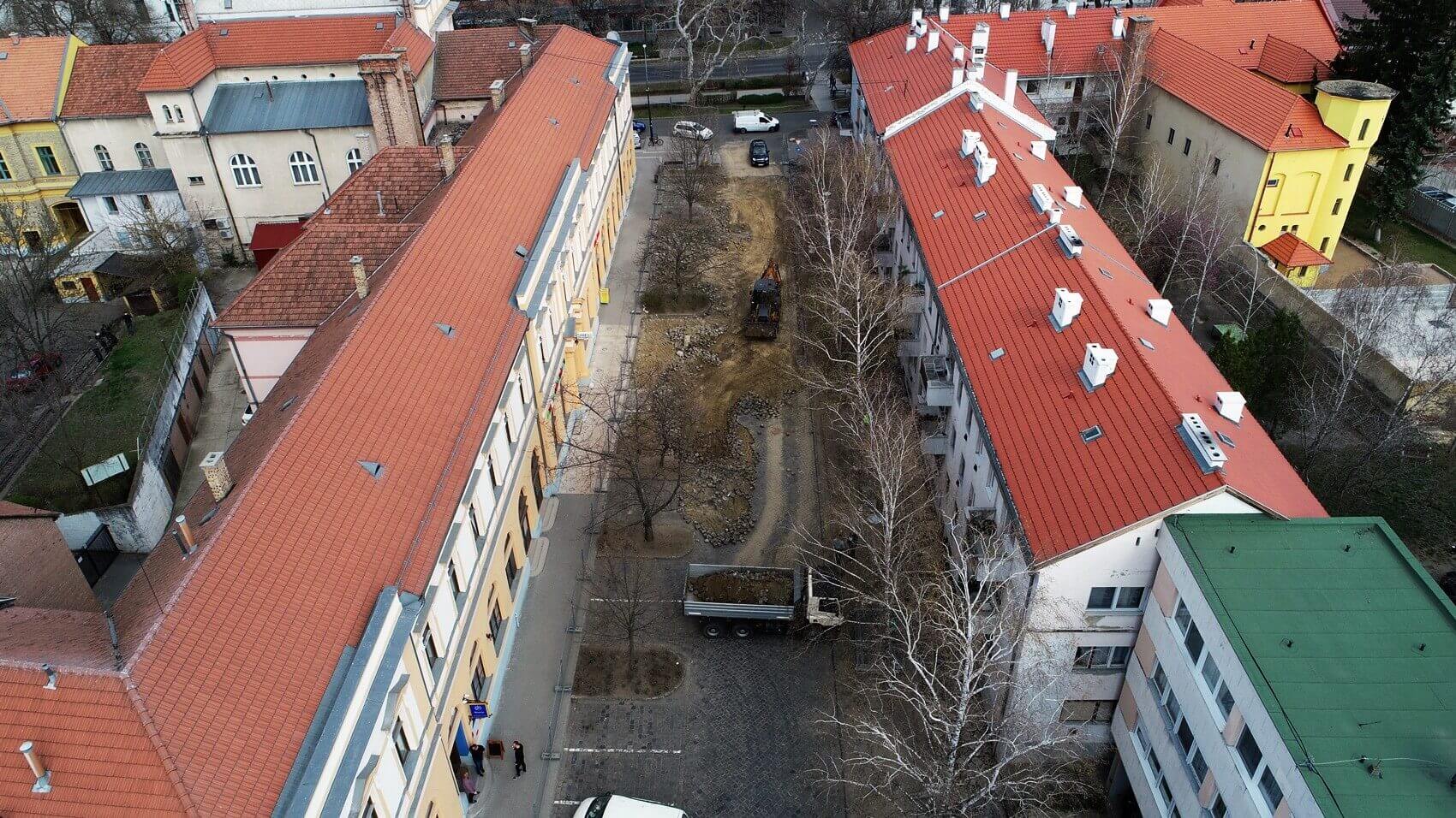 A környezettudatos gondolkodás jegyében a Fürdő utcai parkoló területének burkolata a Holló András utcából elbontott nagykockakő újrafelhasználásával jött létre nagyjából 500 négyzetméteren.