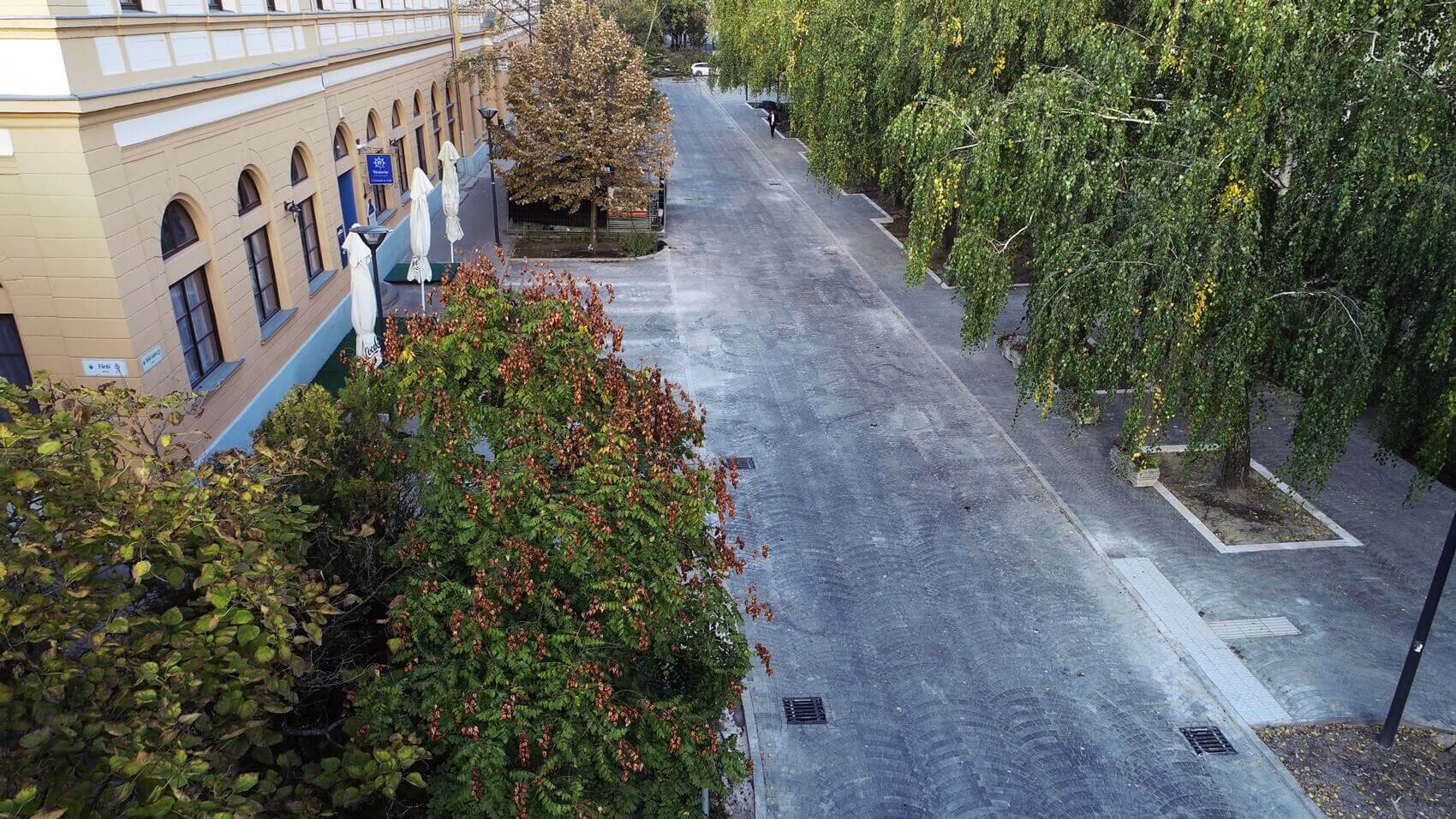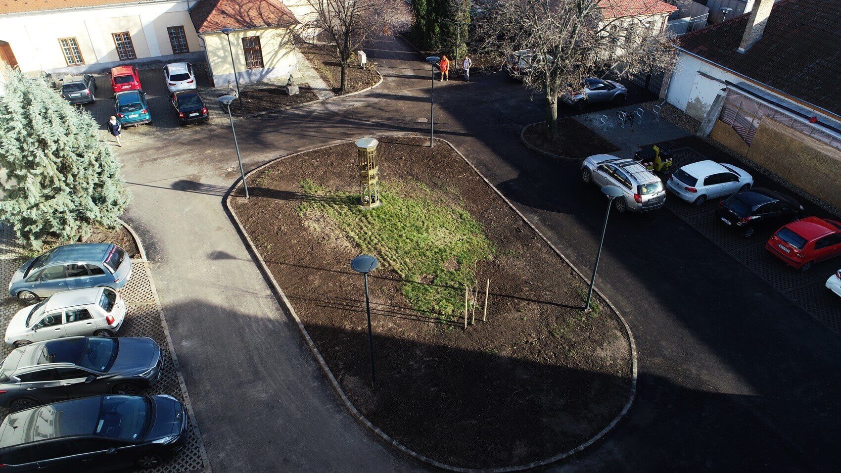 „Továbbá a főtér közepén egy ciszterna került kialakításra, ami a környező tetőkről lefolyó esővizet gyűjti össze. Az öntözést egy újonnan telepített vízgépészeti akna biztosítja, így a főtéren, a kivitelezési terület öntözése innen került ellátásra” – fejtette ki az építésvezető.