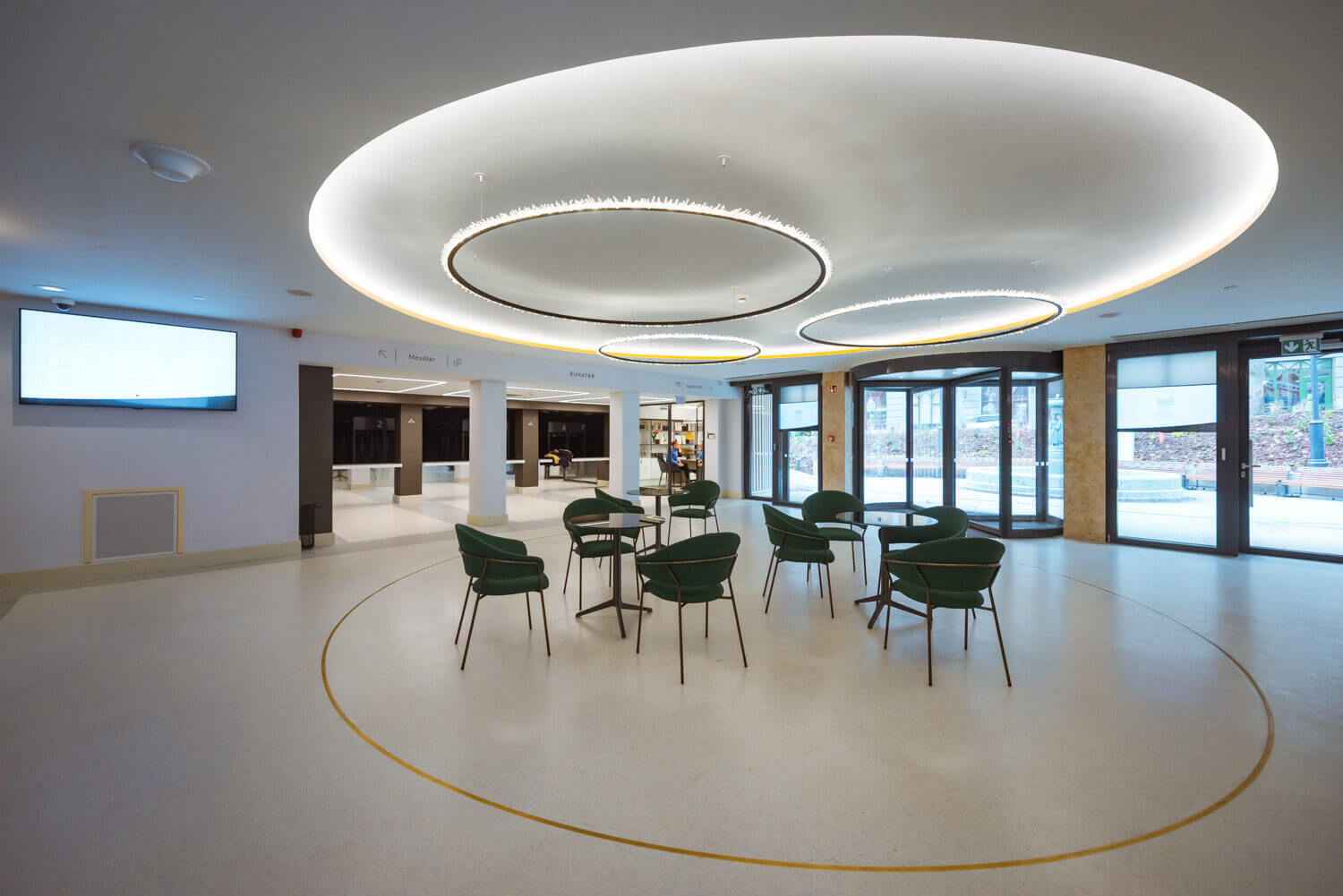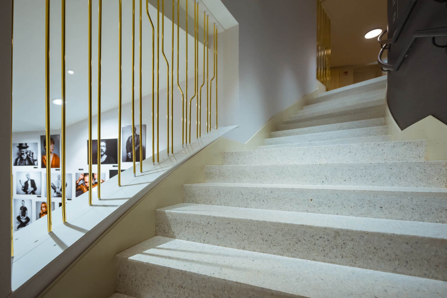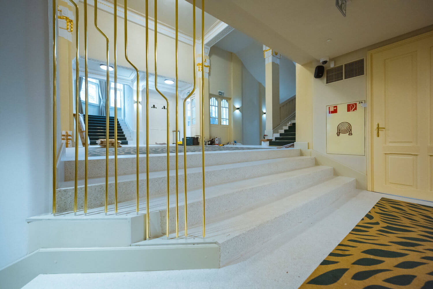 „Az üzemi épület teljes elbontása, majd az alapozási sík több mint 3 méterrel lejjebb történő felvétele lehetővé tette az alagsorban egy „kamaraszínház” kialakítását. Ez tulajdonképpen egy 120 fős kisszínházat jelent, amit a meglévő műemléképülethez csatlakozva kellett elkészíteni” – avatott be minket a részletekbe Holló Ákos.