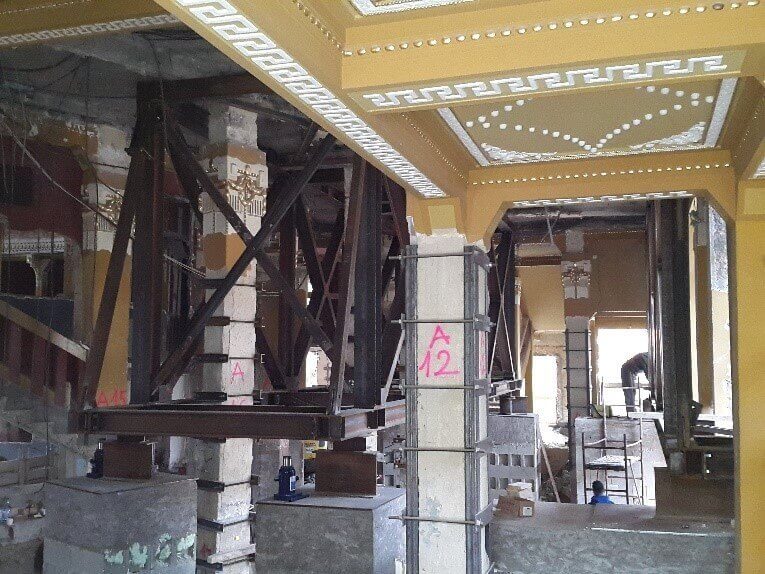 „Ez teljes épületdiagnosztikát -feltárást, kutatást és vizsgálatot- jelentett, valamint ezalapján a szerkezettervező által megtervezett épületmegerősítéseket is” – ismertette Holló Ákos. „Így az alaptestektől kezdve a teljes tartószerkezet megerősítése, részben acélszerkezetekkel, részben pedig szénszálas technológia alkalmazásával valósult meg” – tette hozzá.