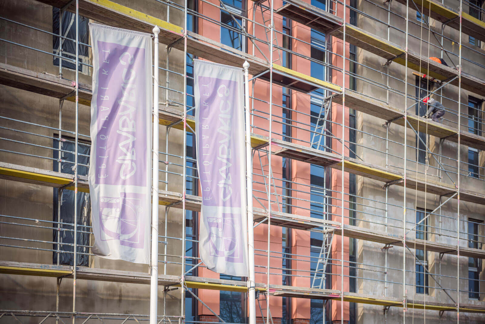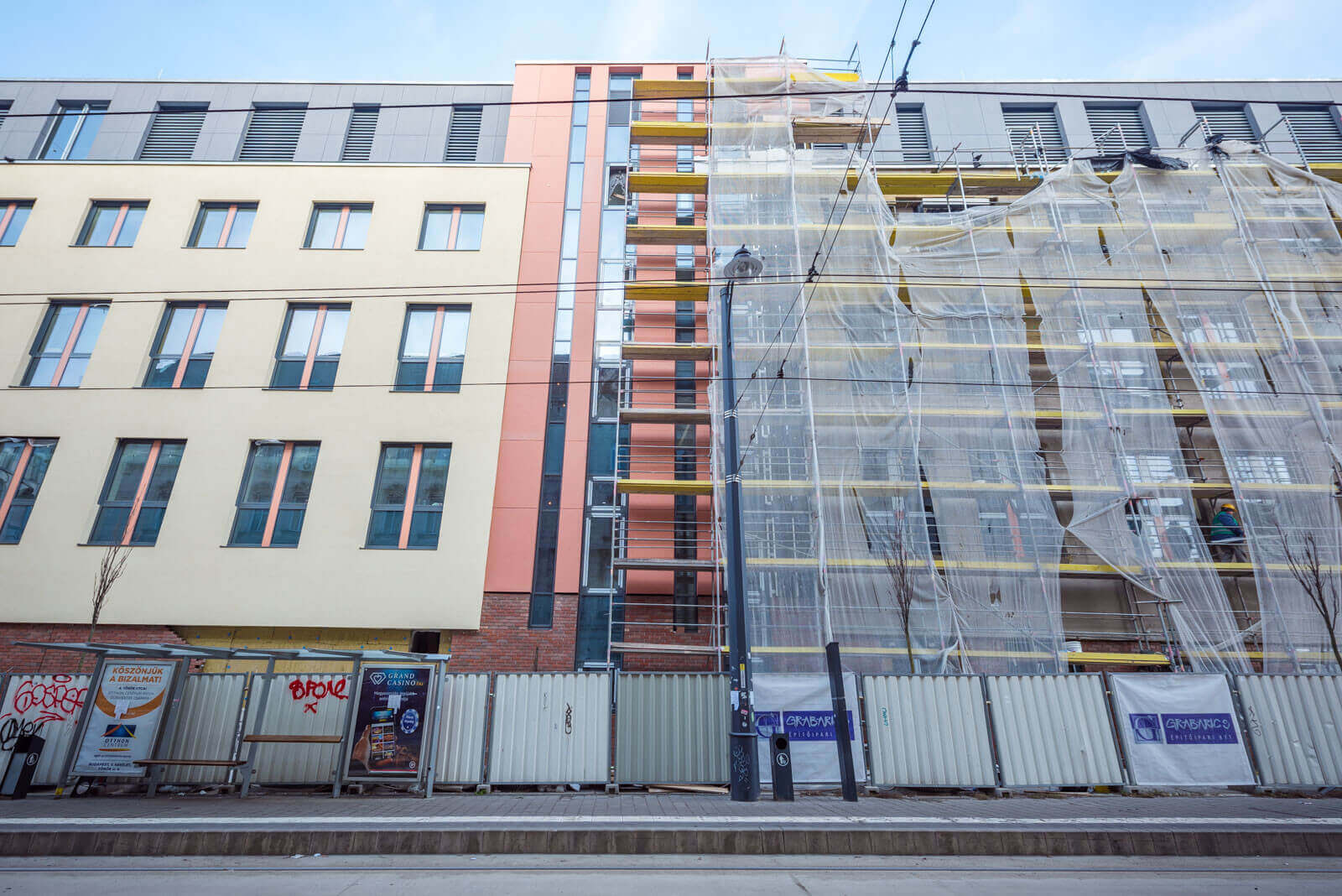 Többek között emiatt is dolgoznak az épületen a téli idő ellenére is. A homlokzatfestés idejére fóliával burkolták körbe az épületet borító állványzatot, amely alá meleg levegőt fújtak, emiatt a fagy sem okozott kényszerszünetet.