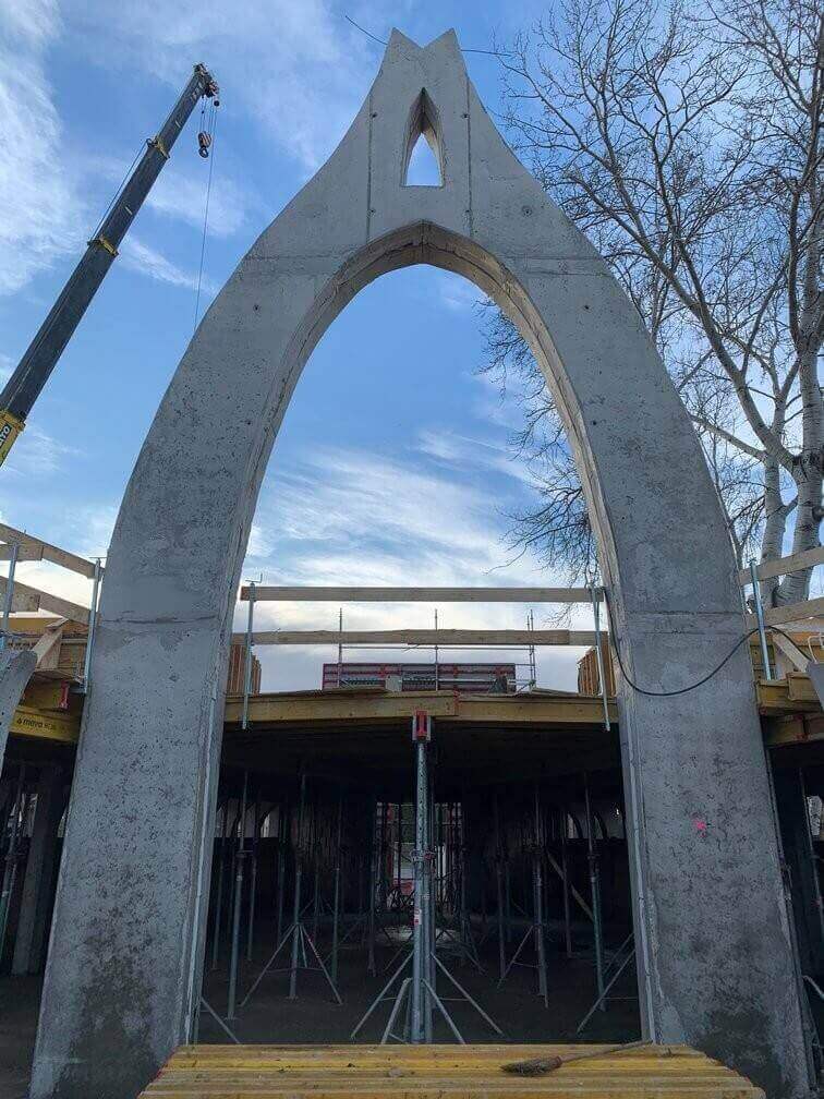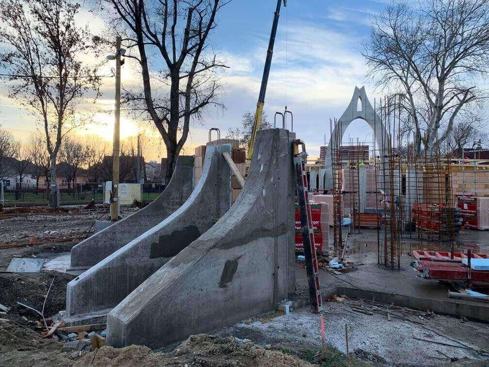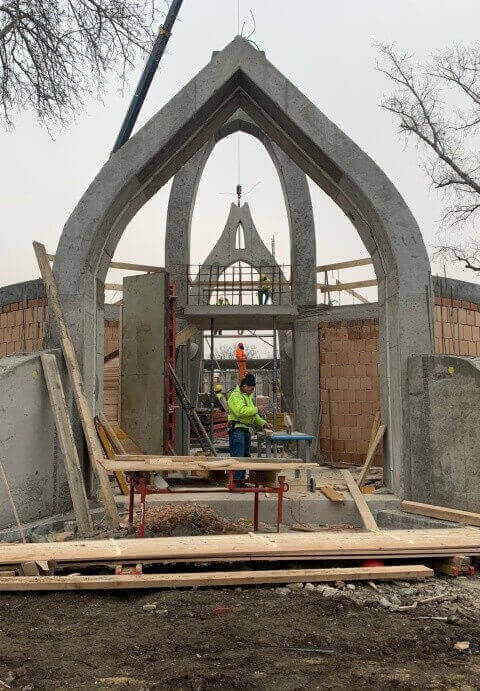 A KÉSZ kivitelezésében épülő templomnál már befejezték a gyülekezeti termek szerkezetépítését, hamarosan pedig megkezdődik a tetőszerkezet kialakítása.