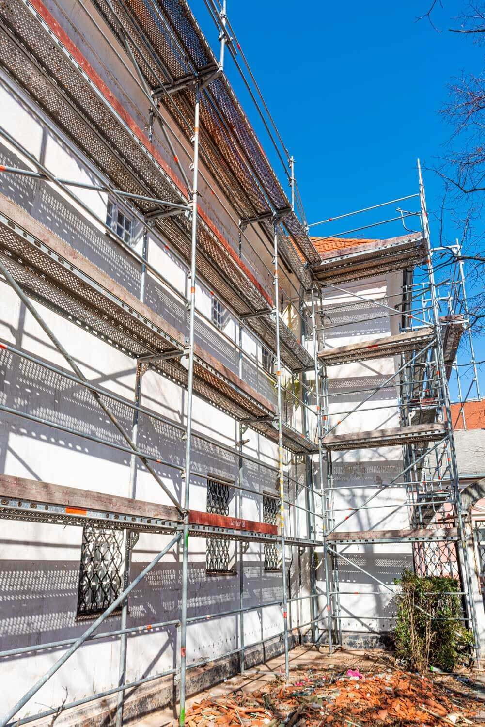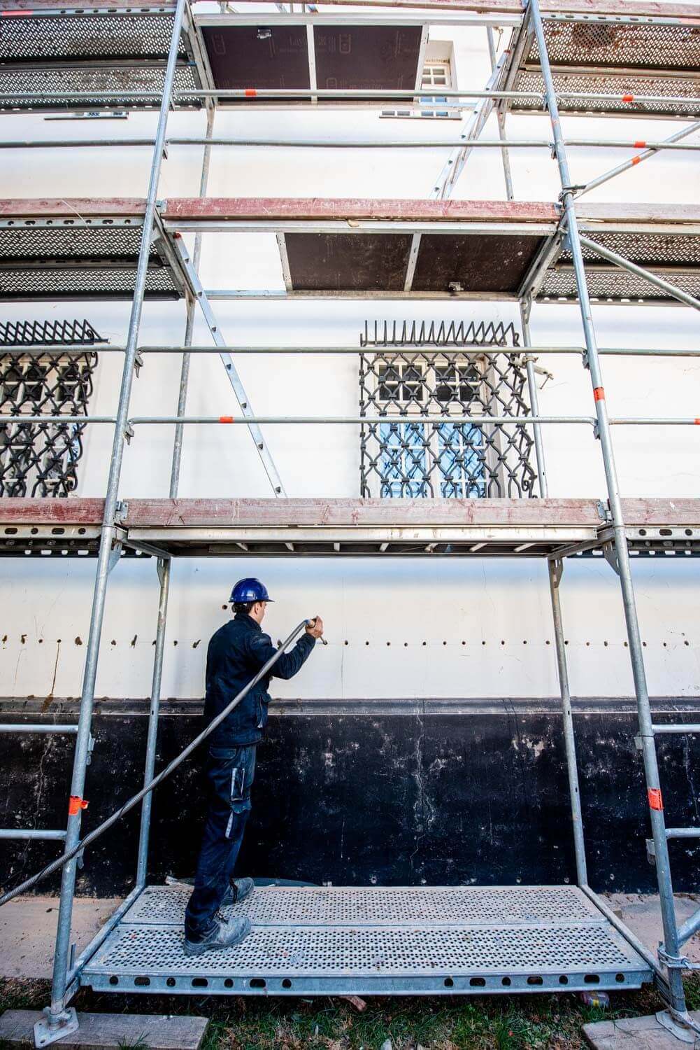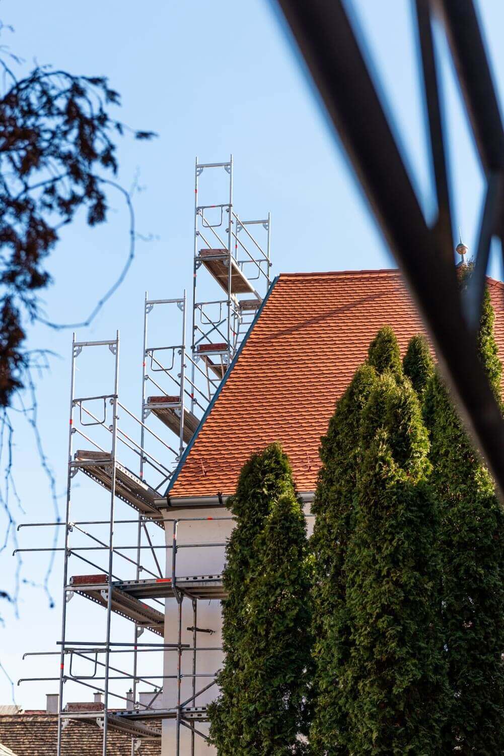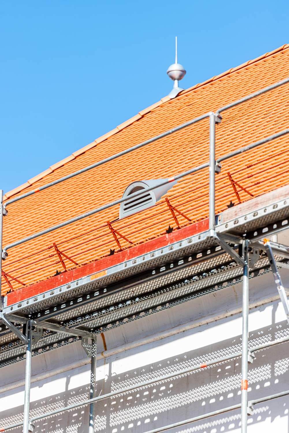 A teljes tervezést és a meglévő tetőfedés bontását követően, komplett új tetőhéjazat készült, a tetőszerkezet megerősítésével és bádogozással közel 2000 négyzetméternyi területen. A meglévő külső homlokzati vakolat leverése után légpórusos páraáteresztő vakolatot készítettek a kivitelezők közel 300 négyzetméteren.