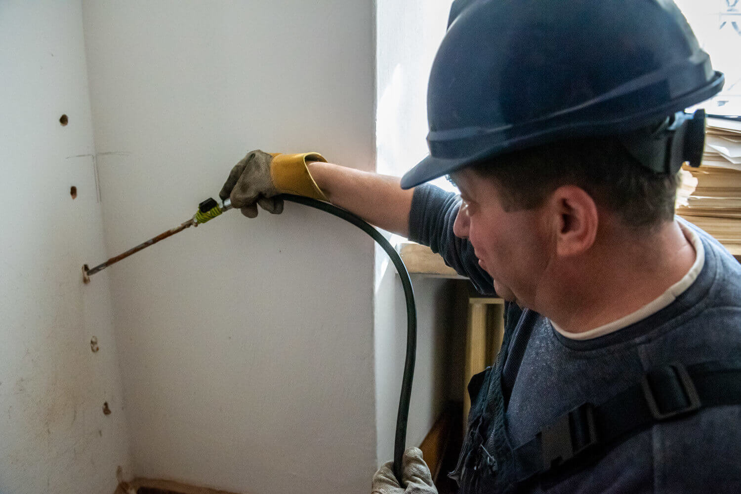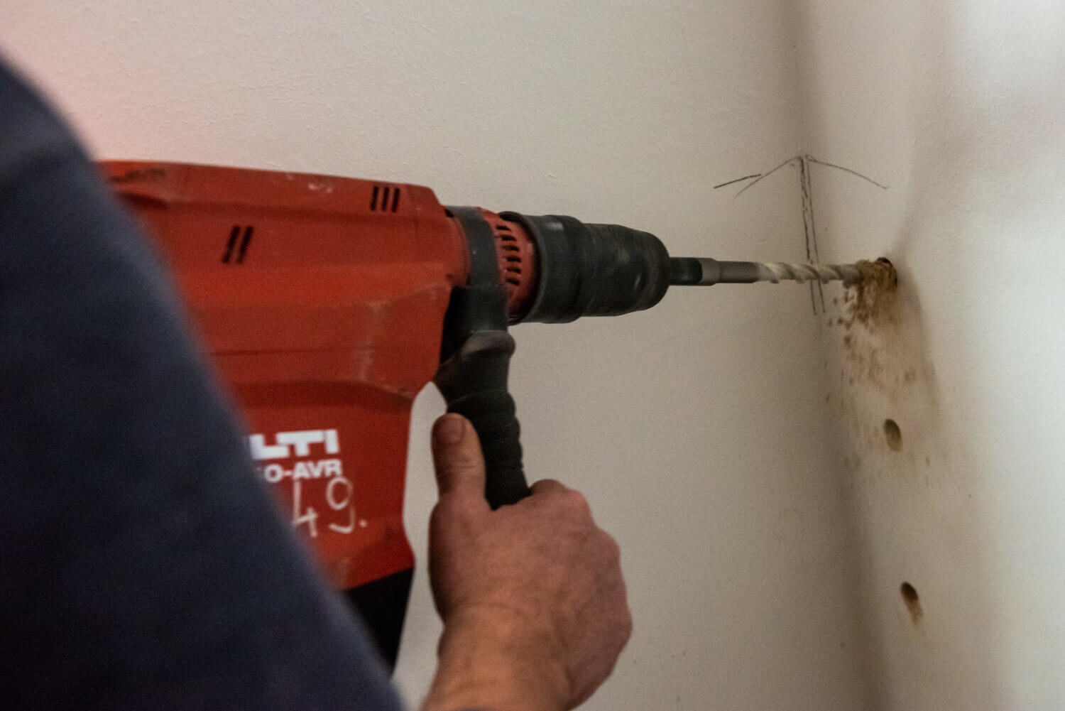 A kivitelező a lábazat vonalában az utólagos talajnedvesség elleni falszigetelést is elkészíti furatinjektálásos módszerrel.