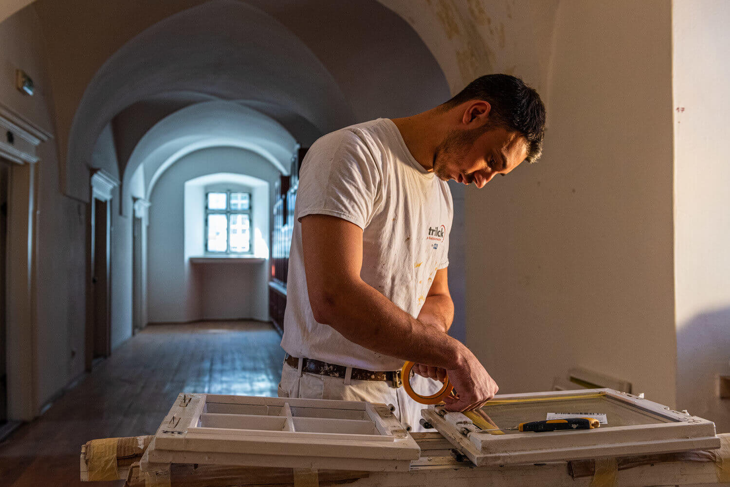 A projekt keretében 70 fa homlokzati nyílászáró és 19 homlokzati kovácsoltvas rács is felújításra került, valamint 61 ablakpárkányt helyeznek el titáncink lemez felhasználásával.