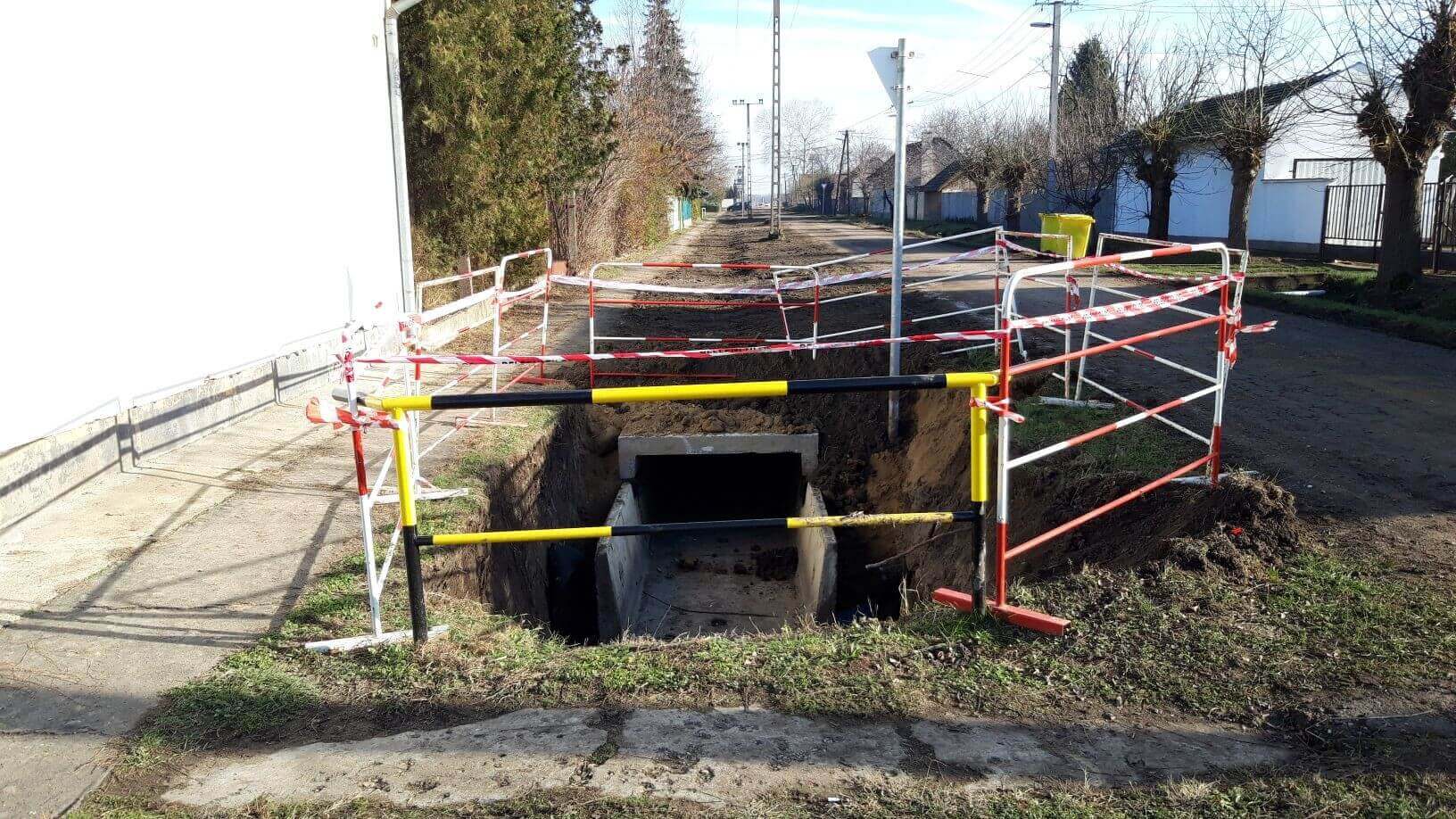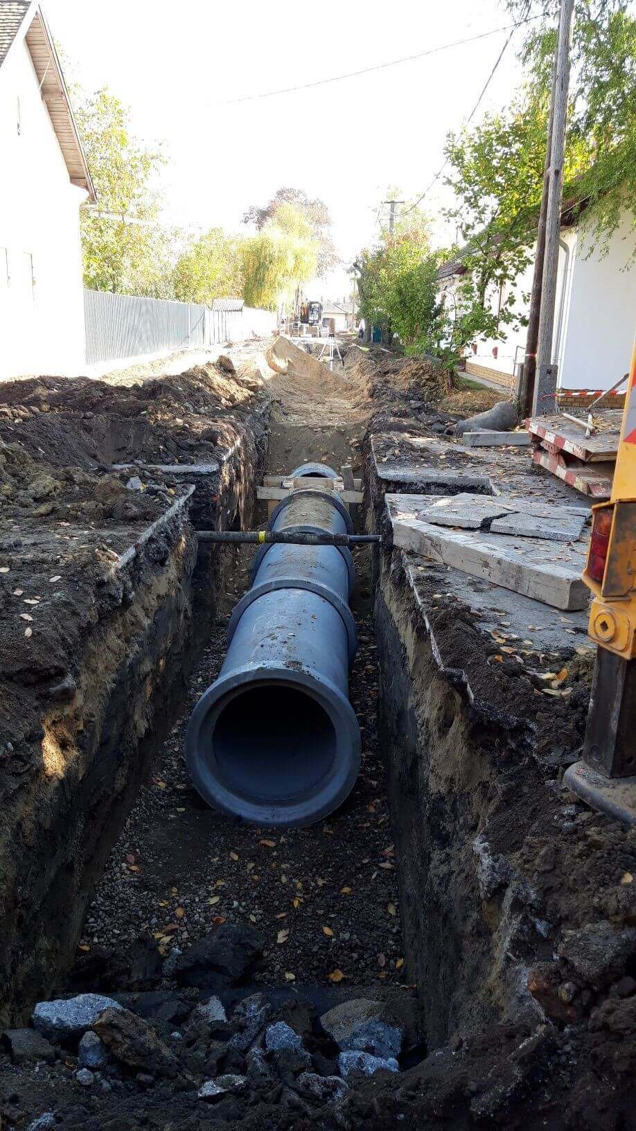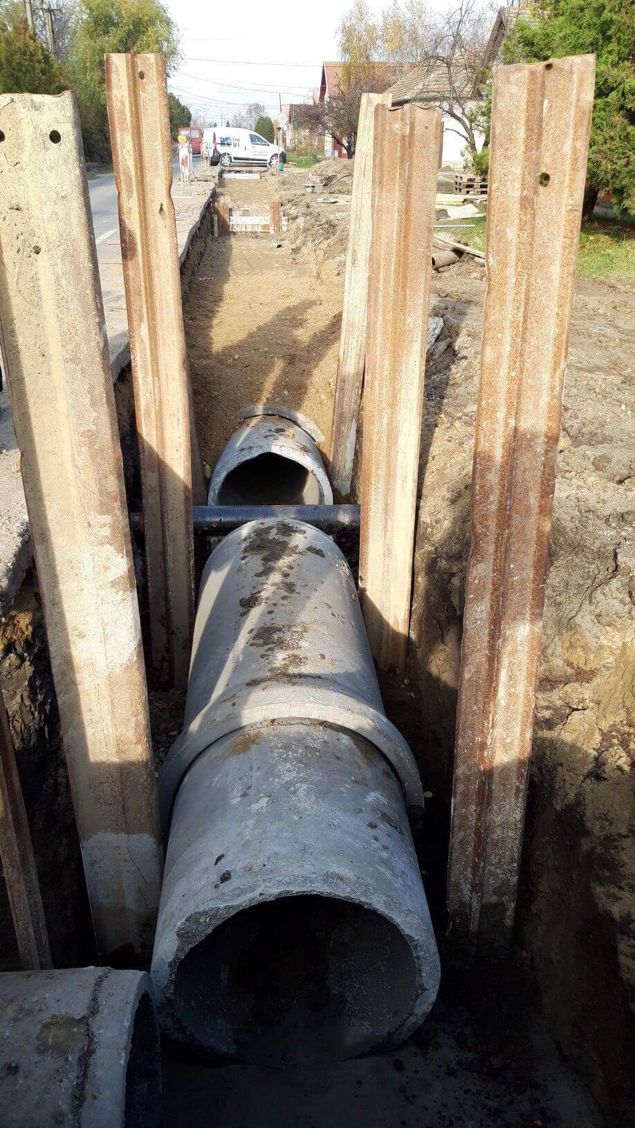„Ezen kívül nagyon megnehezítette a munkát, hogy az építendő csatorna nagy szelvénymérete miatt, a tervezett mélységben nagyon sok közműkeresztezéssel találkoztunk, mely közműveket ki kellett váltani” – ismertette Tószegi Tamás.
