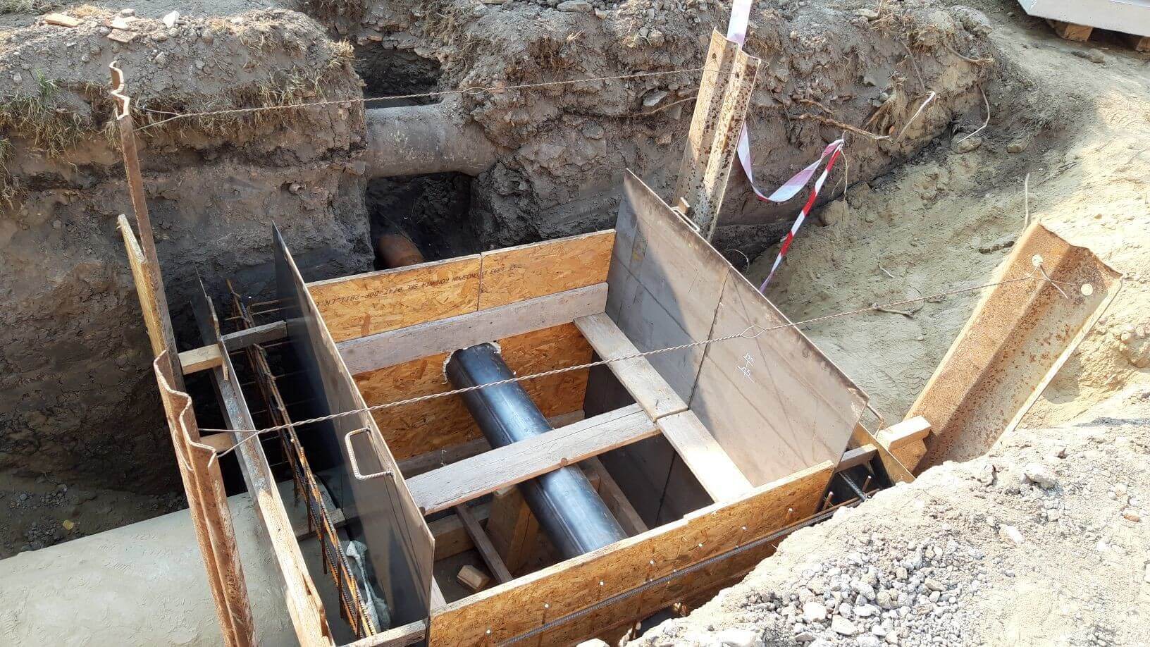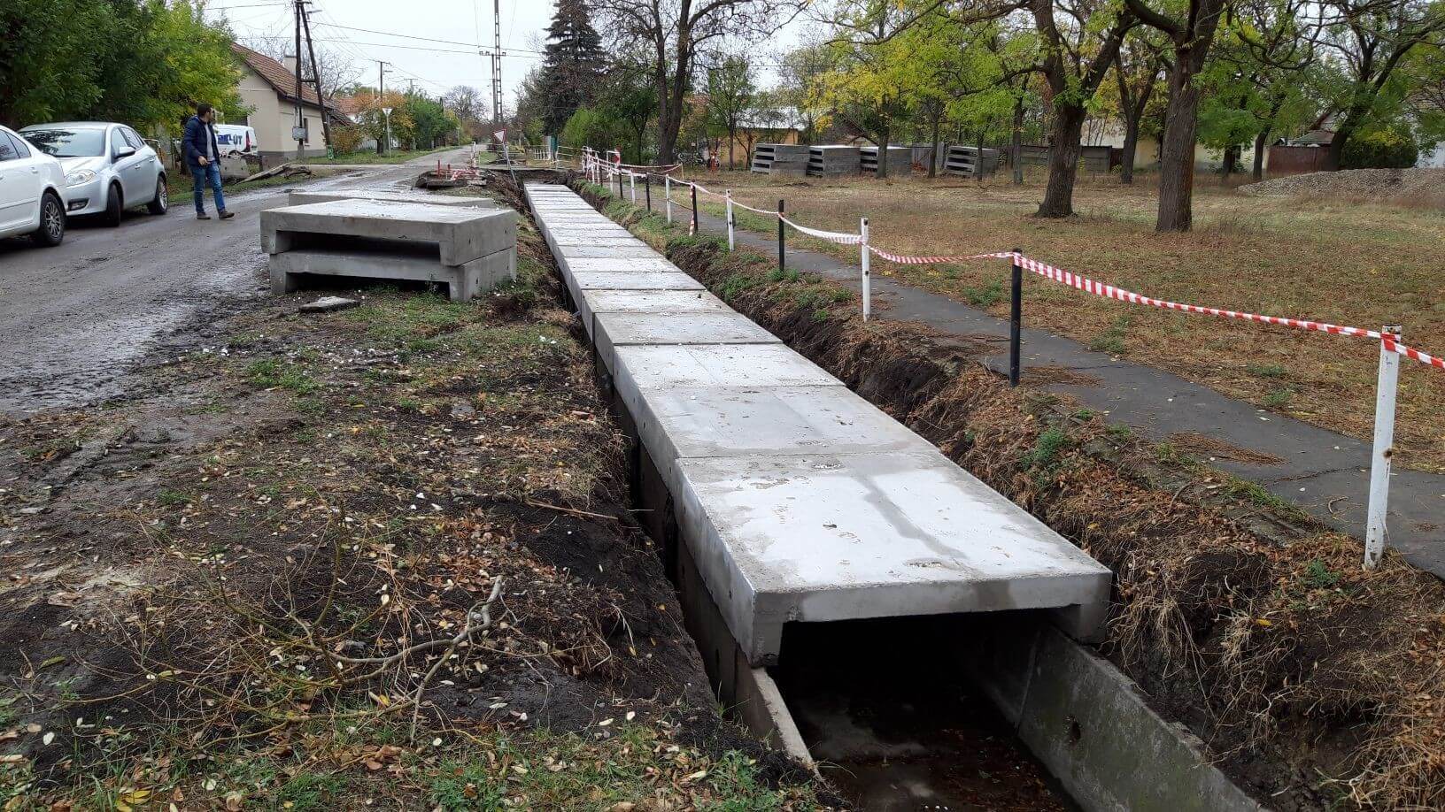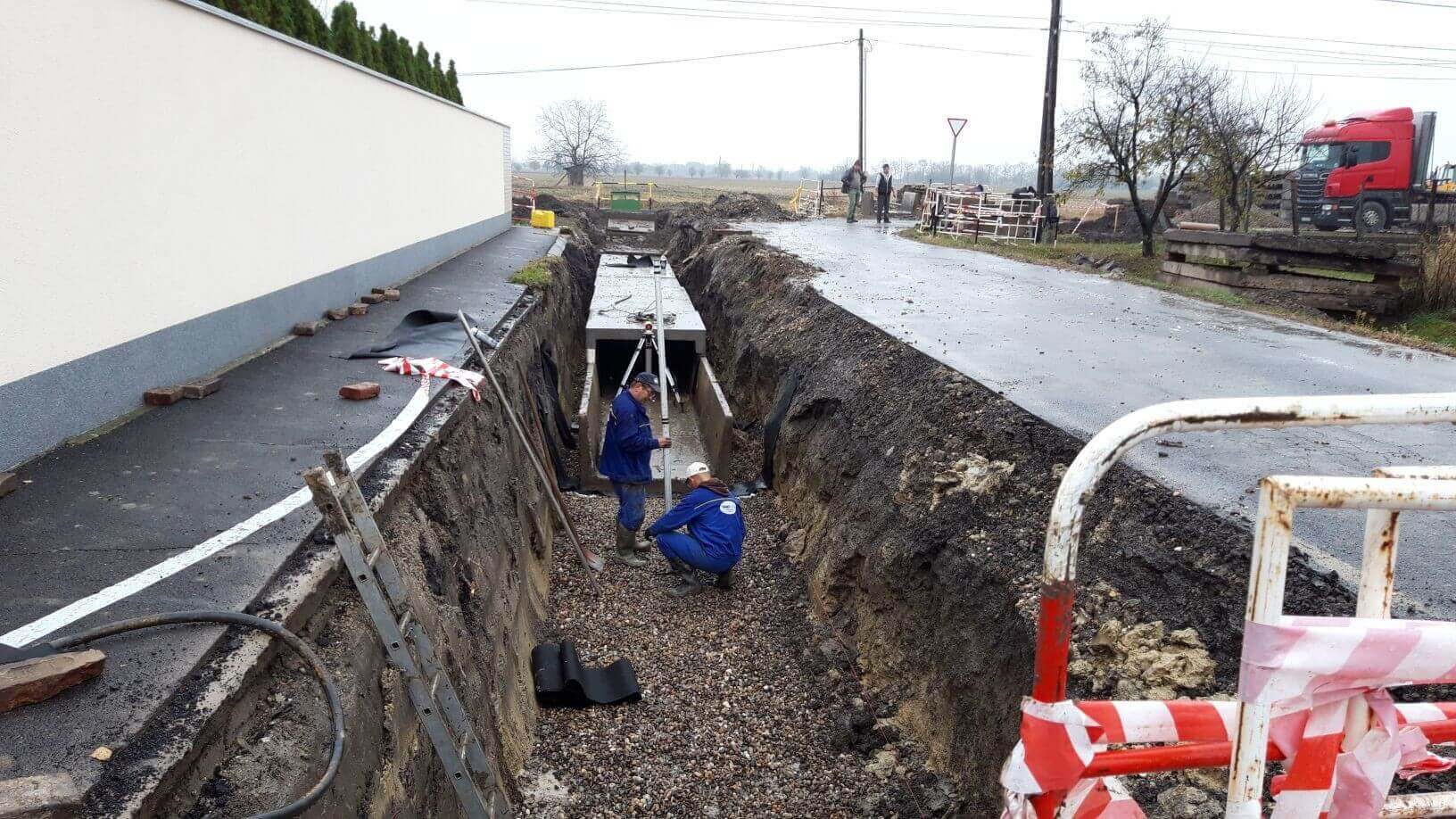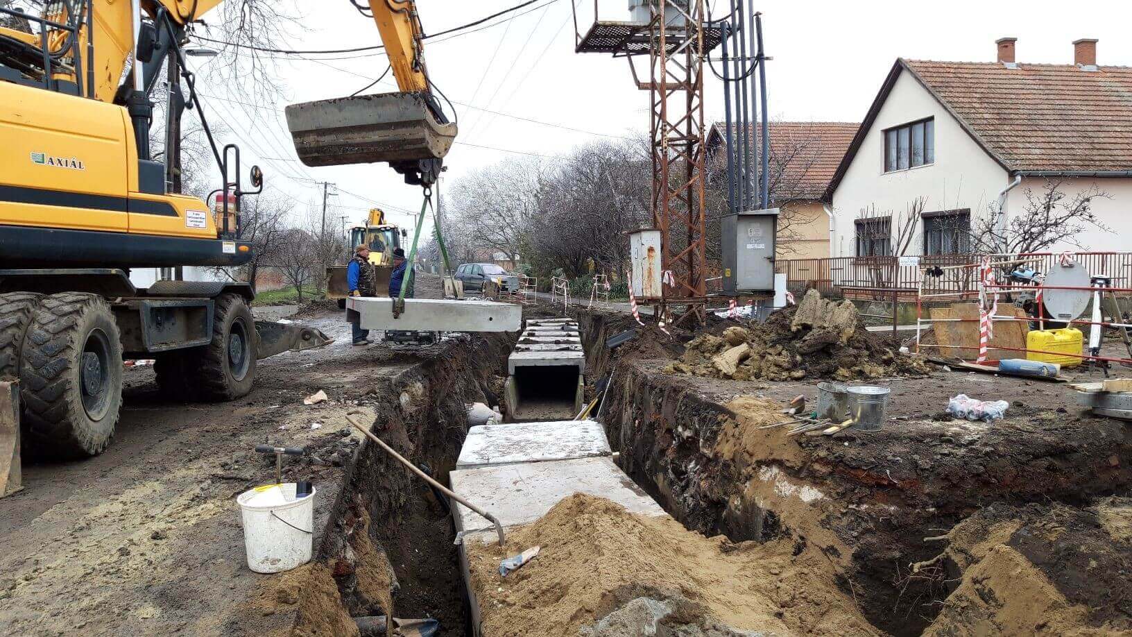 „Ezen kívül nagyon megnehezítette a munkát, hogy az építendő csatorna nagy szelvénymérete miatt, a tervezett mélységben nagyon sok közműkeresztezéssel találkoztunk, mely közműveket ki kellett váltani” – ismertette Tószegi Tamás.