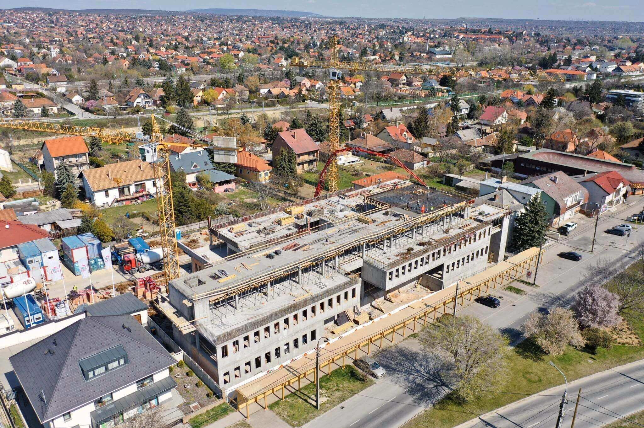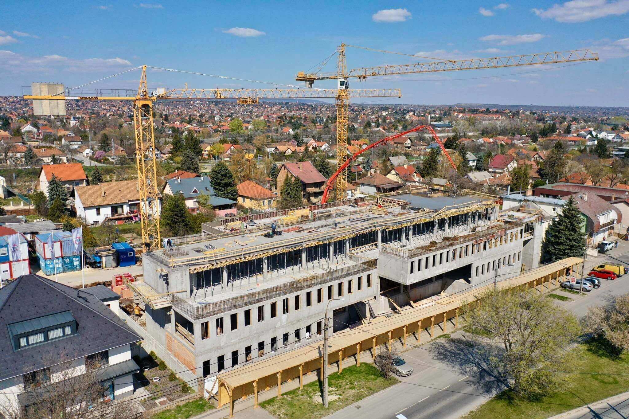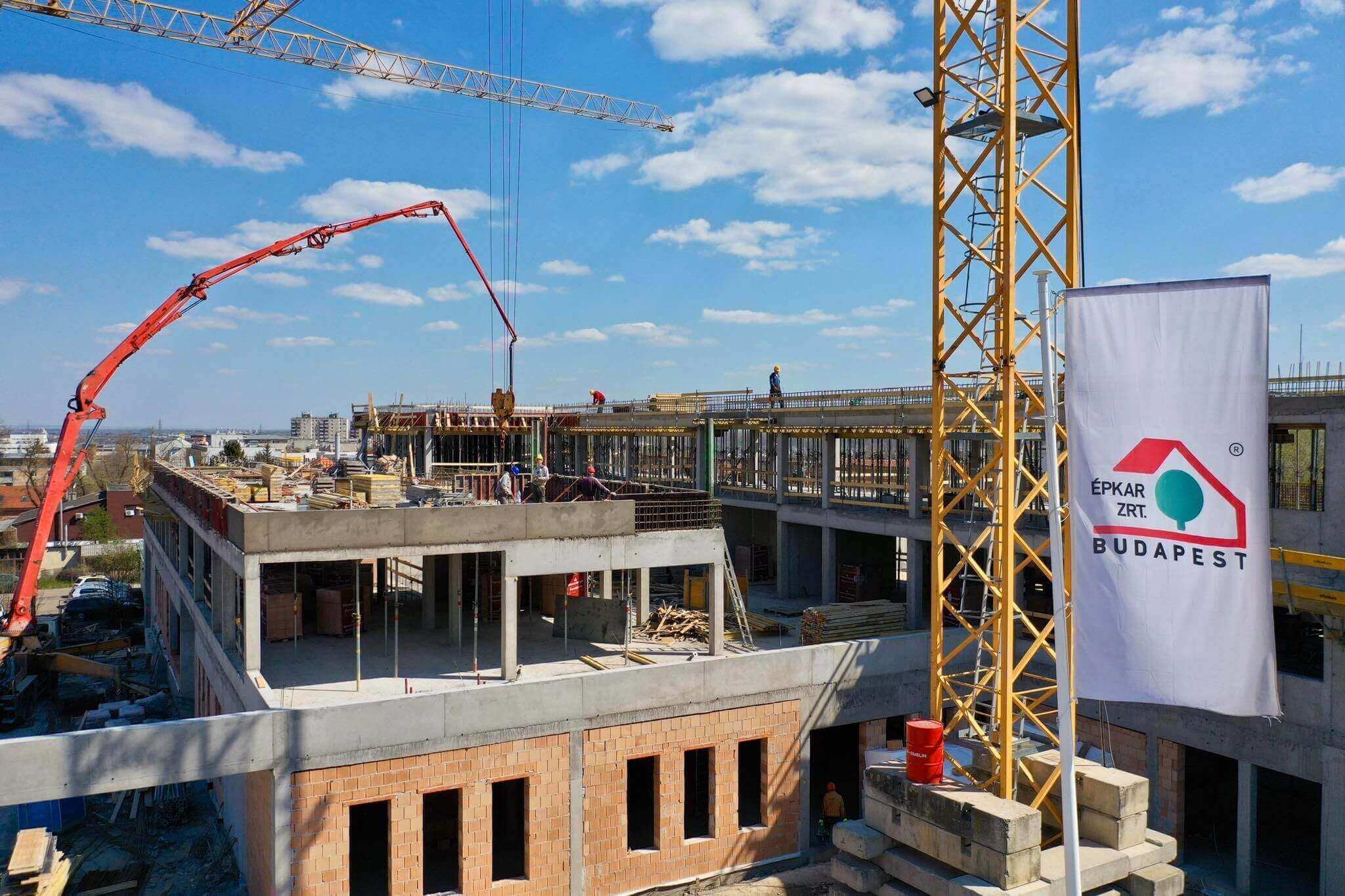 A napokban a háromszintes, mintegy 3570 négyzetméteres épület a zárófödém bebetonozásával elérte a legmagasabb pontját.