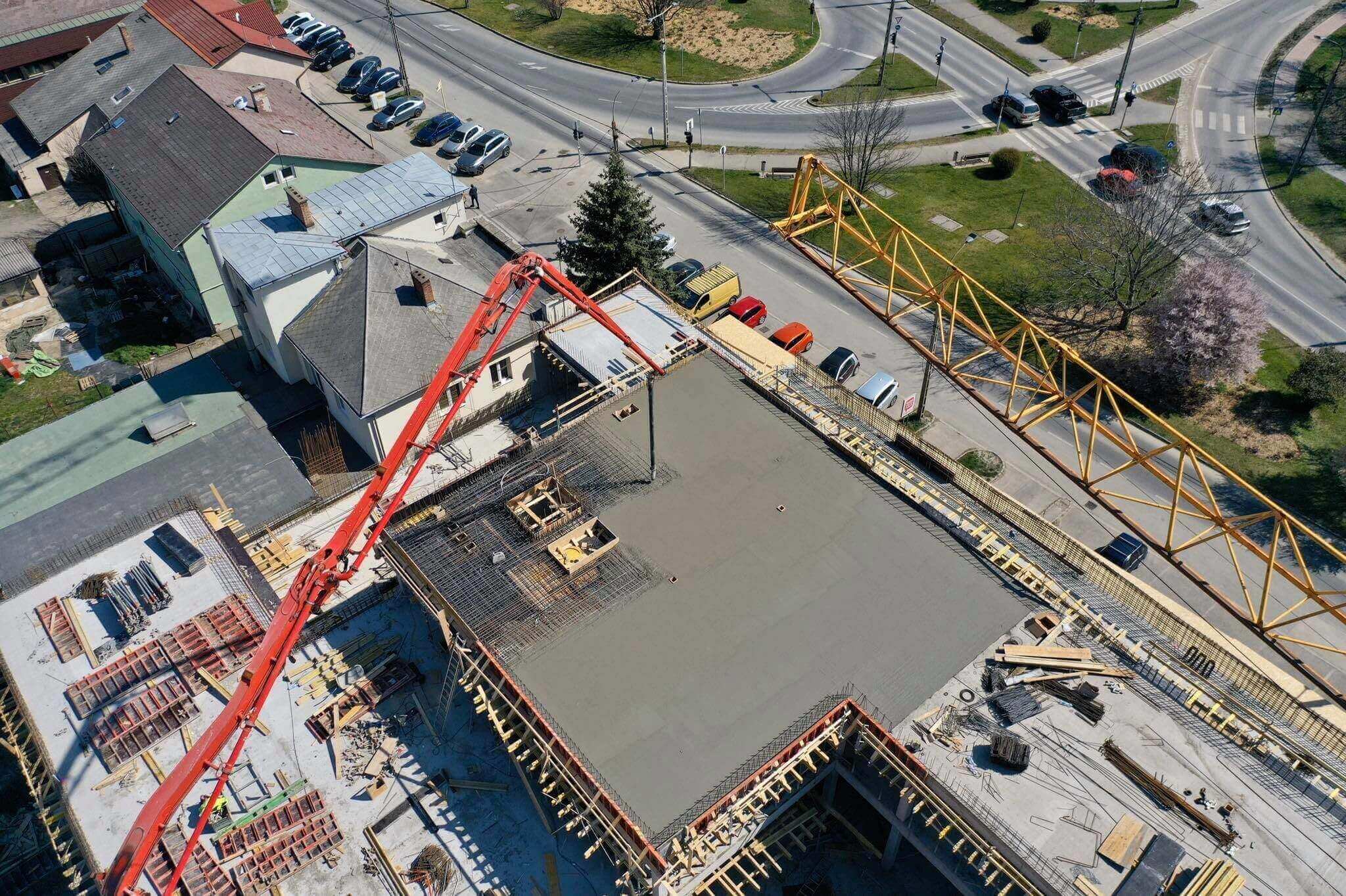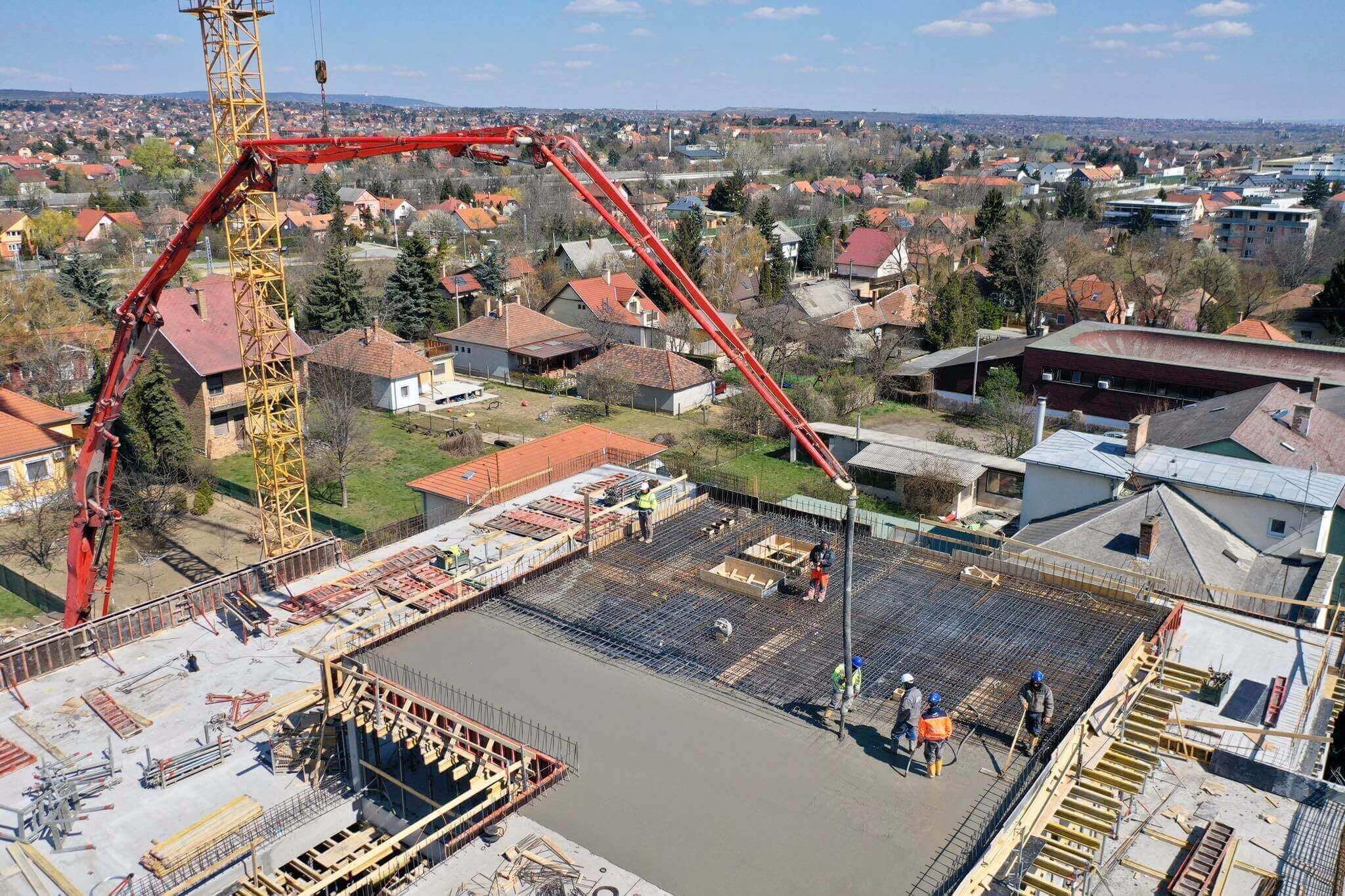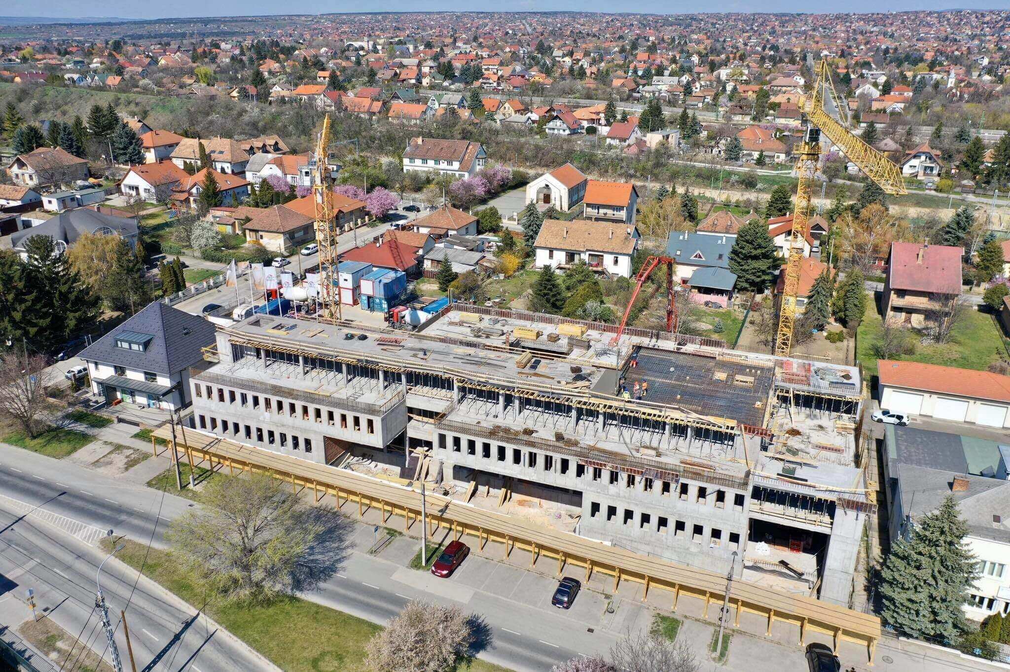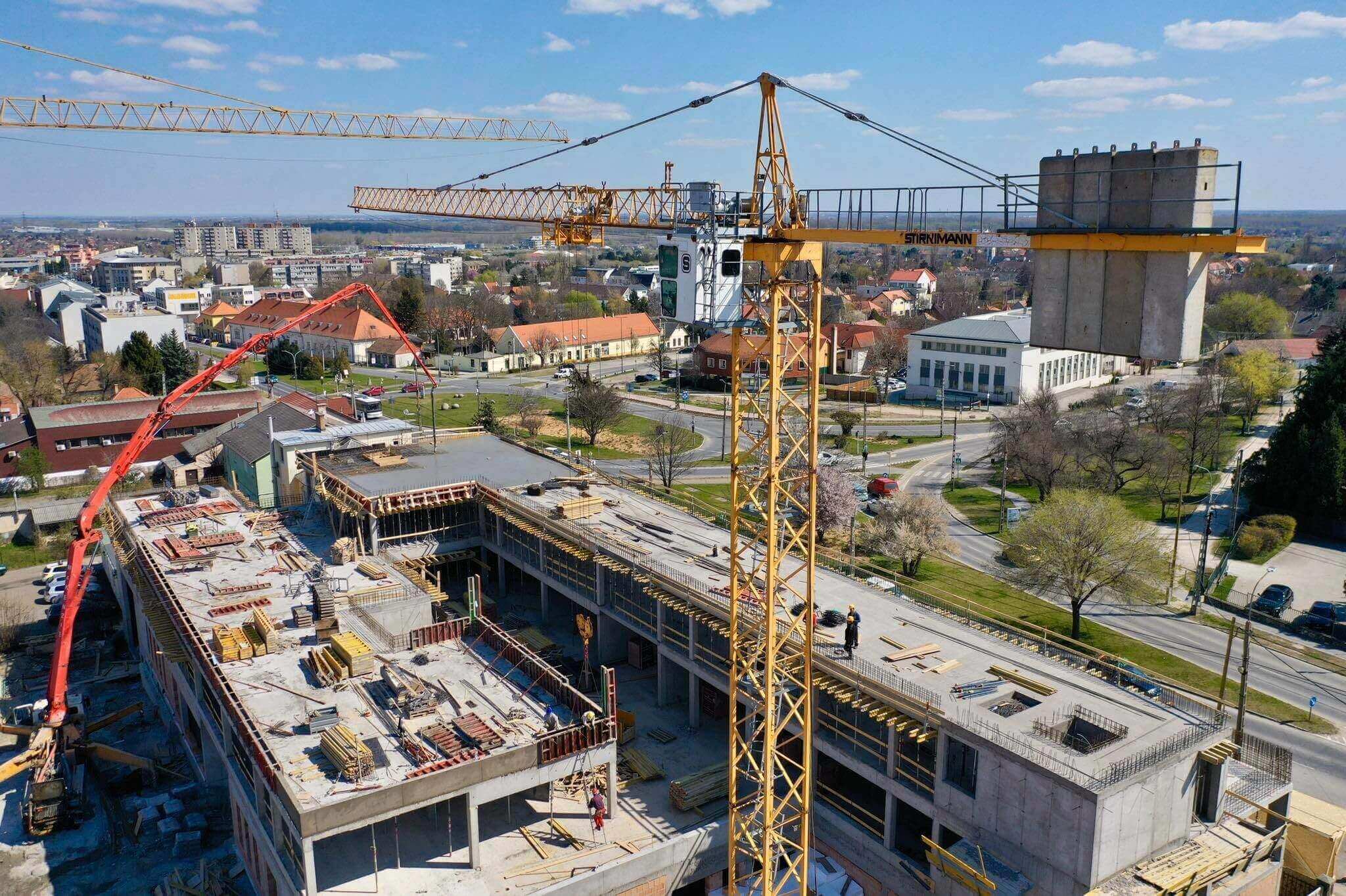 A napokban a háromszintes, mintegy 3570 négyzetméteres épület a zárófödém bebetonozásával elérte a legmagasabb pontját.