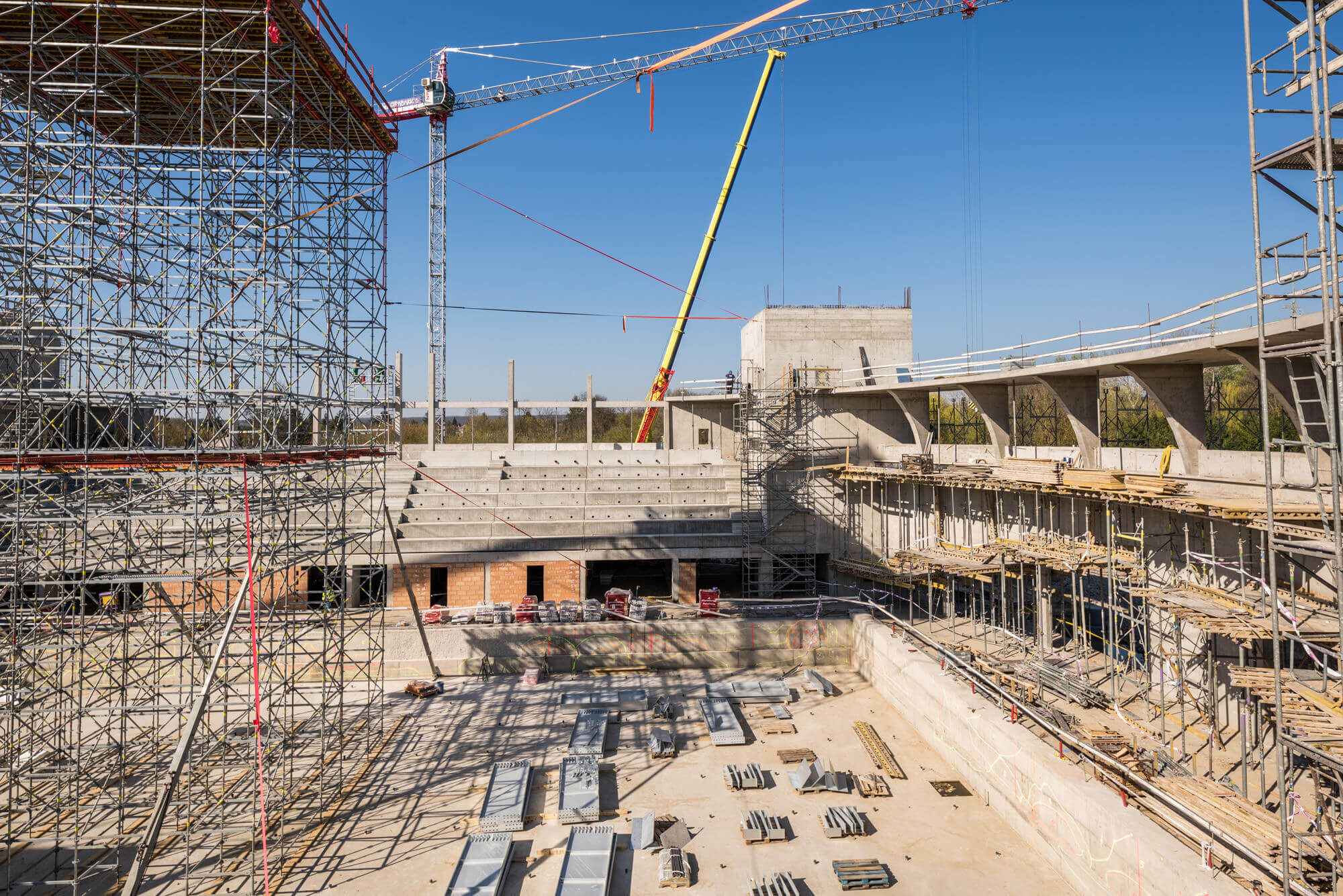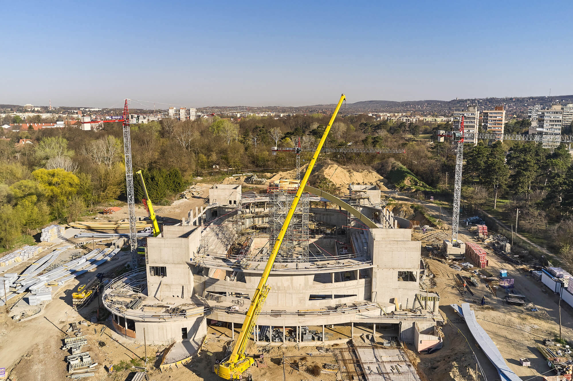 Végül hosszú előzmények után a tényleges kivitelezés a munkagödörrel és a terület elhatárolással 2018-ban indult, mára pedig zökkenőmentesen, látványos ütemben halad. Mindezt annak ellenére, hogy a helyszín adottságai és az építészeti elgondolások a kivitelezőktől különleges műszaki megoldásokat követelnek.