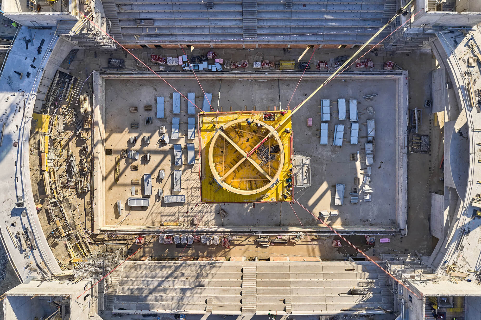 A területről több romos és használhatatlan épületet el kellett bontani ahhoz, hogy a földmunkák elkezdődjenek. A kész épület lefelé majdnem 5-8 míg felfelé 26 méteren terjed majd. Előbbi az építőgödör alját, míg utóbbi a kész kupola csúcsát jelenti, tehát, bár az épület arányai miatt ez nem látszik elsőre, de a teljes épület több mint 10 emeletet fog át a föld alatt és felett.