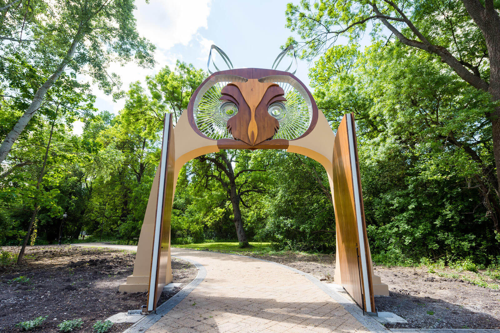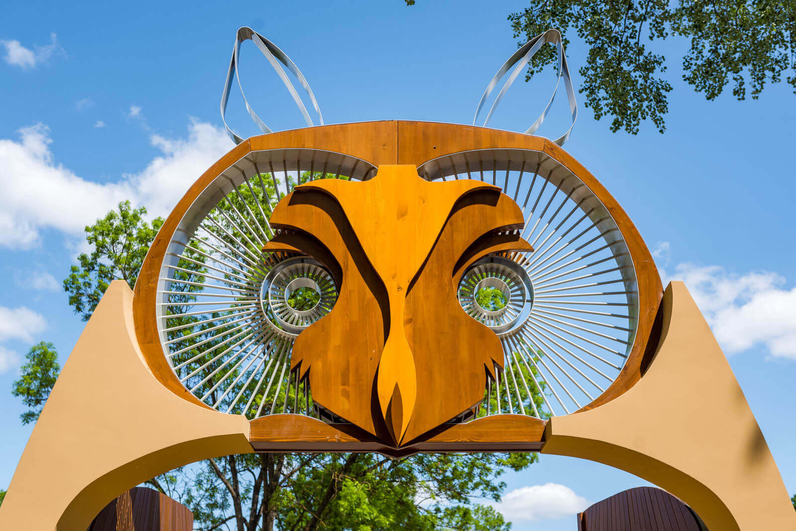 Egy új mondhatni ikonikussá váló bagoly kapu is várja a vendégeket melynek eredetileg május 10-én a madarak és fák világnapján lett volna ünnepélyes átadása, ugyanis 2020 a bagoly éve.