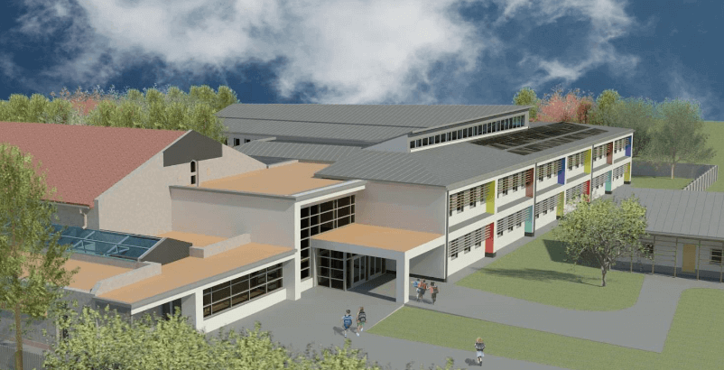 A teljesen új iskolaépület közel 2000 négyzetméteres alapterülettel épül meg, melyhez egy 204 négyzetméteres kerékpártárolót is terveznek.