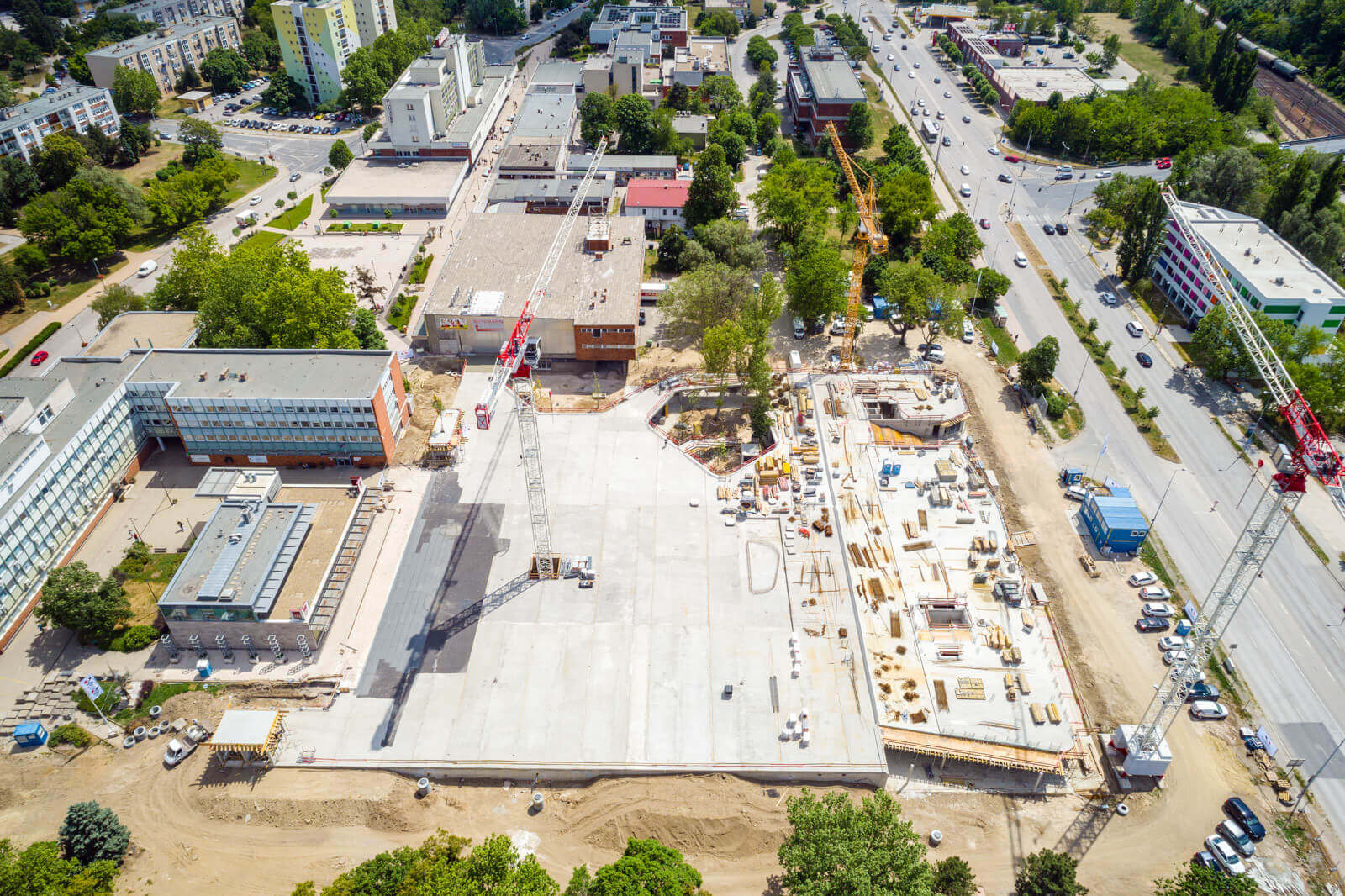 A WHB kivitelezésében a régi parkolók helyén új közösségi teret hoznak létre, ugyanakkor egy kétszintes mélygarázs is felépül.