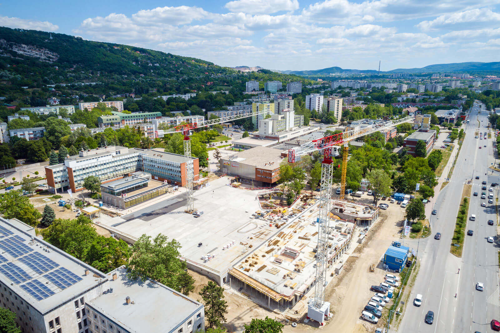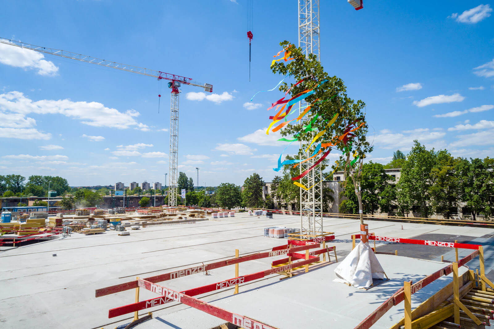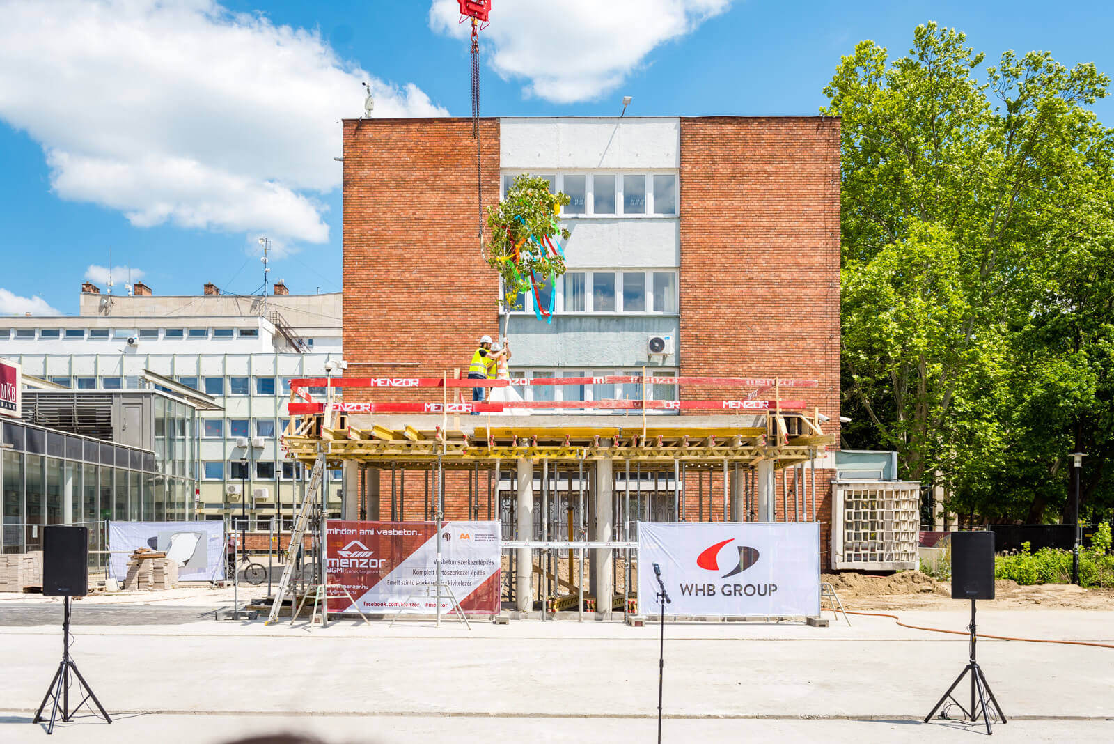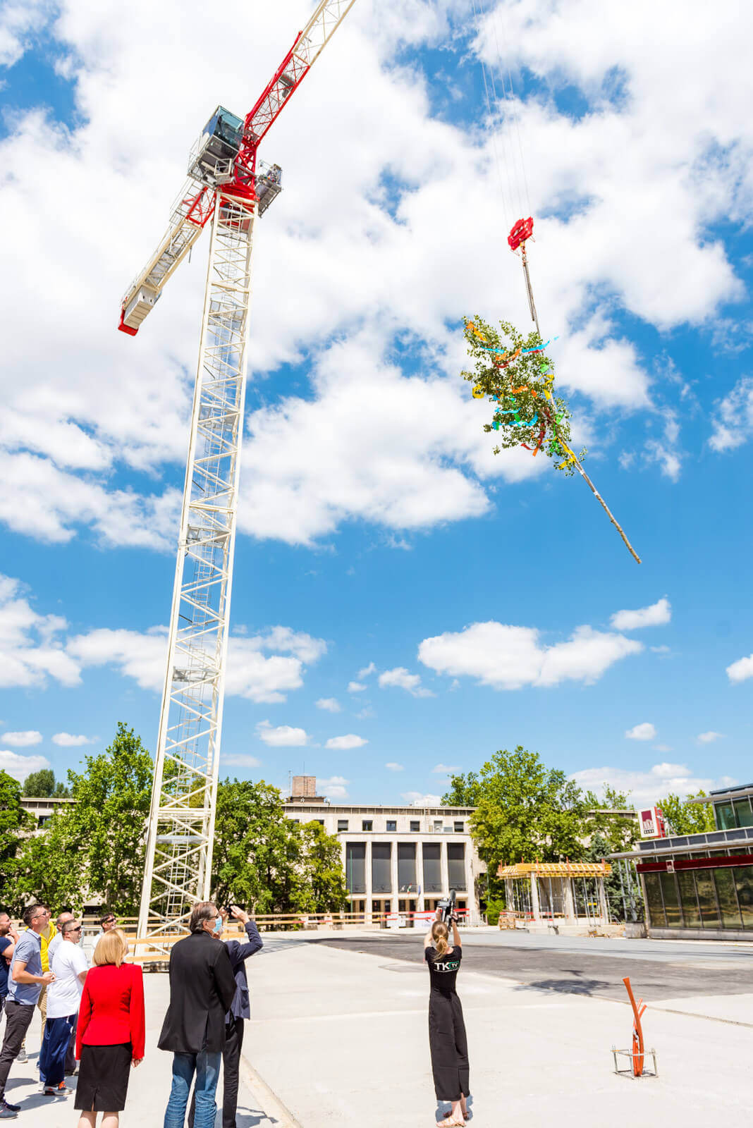 Tatabányán csütörtökön délután megtartották a városközpontot átfogóan fejlesztő projekt bokréta avató ünnepségét. A West Hungária Bau Kft. kivitelezésében zajló beruházásban a Megyeháza előtt a korábbi felszíni parkoló helyén új közösségi teret hoznak létre, ugyanakkor a tér alatt egy kétszintes mélygarázs is felépül. Utóbbinak a vasbeton tartó szerkezete most érte el a legmagasabb pontját, ezt ünnepelte a bokréta avatása.