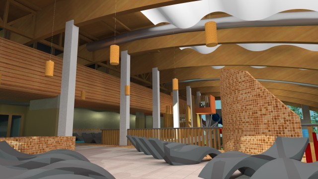 A „téli strandolást” szolgáló beruházással számos wellness- és élményelem létesül – többek közt beltéri csúszdák, sodrófolyosó, mászófal, pezsgőfürdő, nyakzuhanyok és hidromasszázs-fülke.