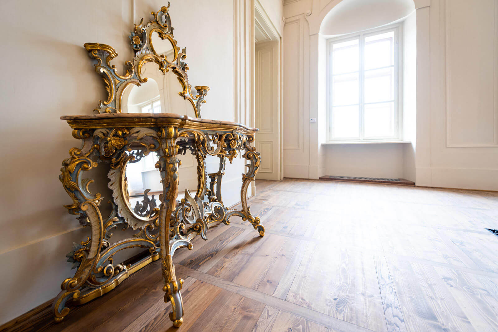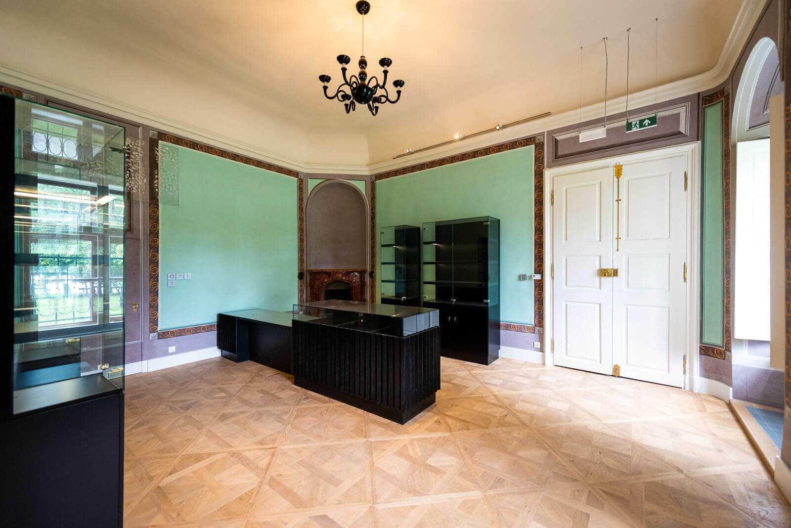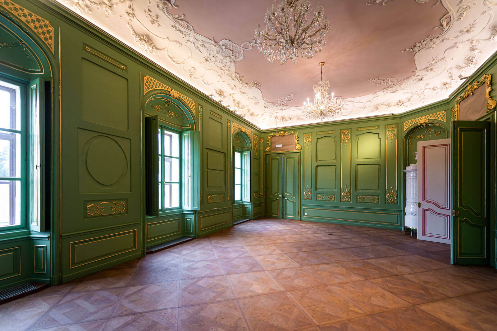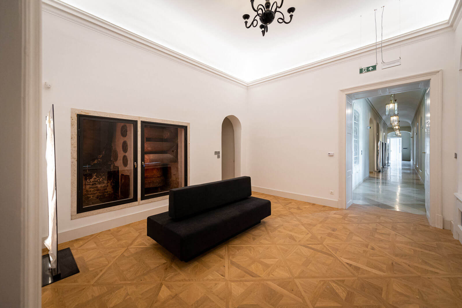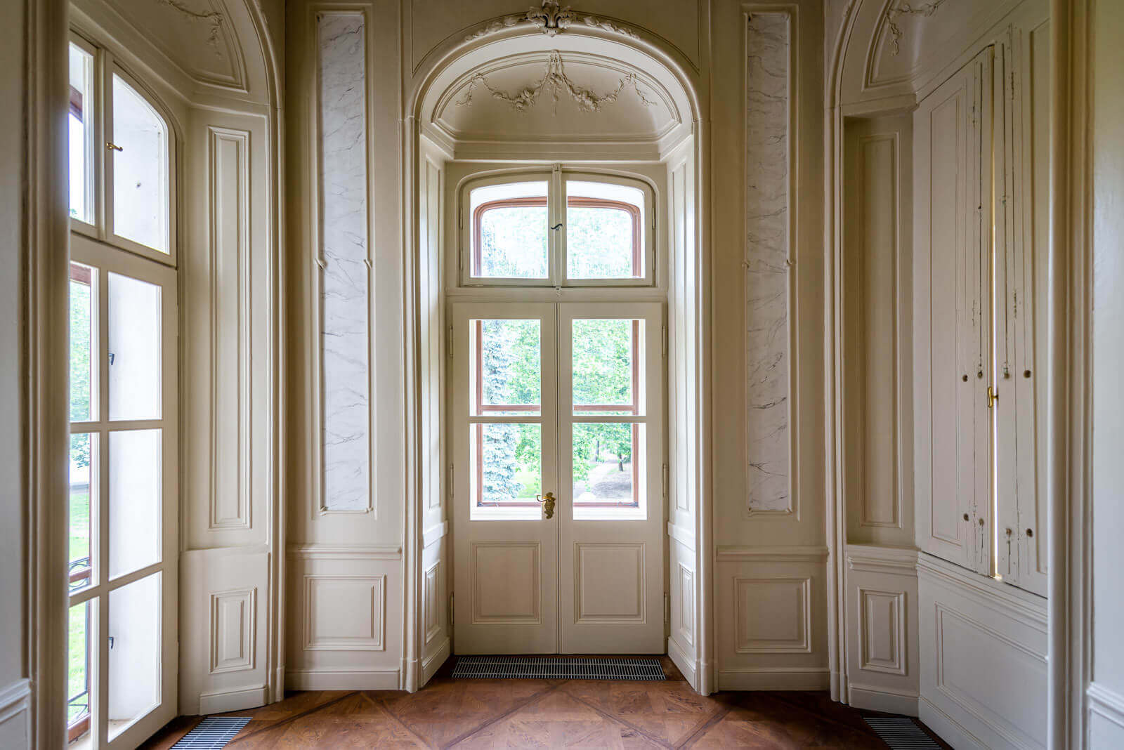Végezetül pedig a farestaurátori feladatok során a meglévő, megmaradó korabeli parketta helyreállítására és visszaépítésére is sor került.