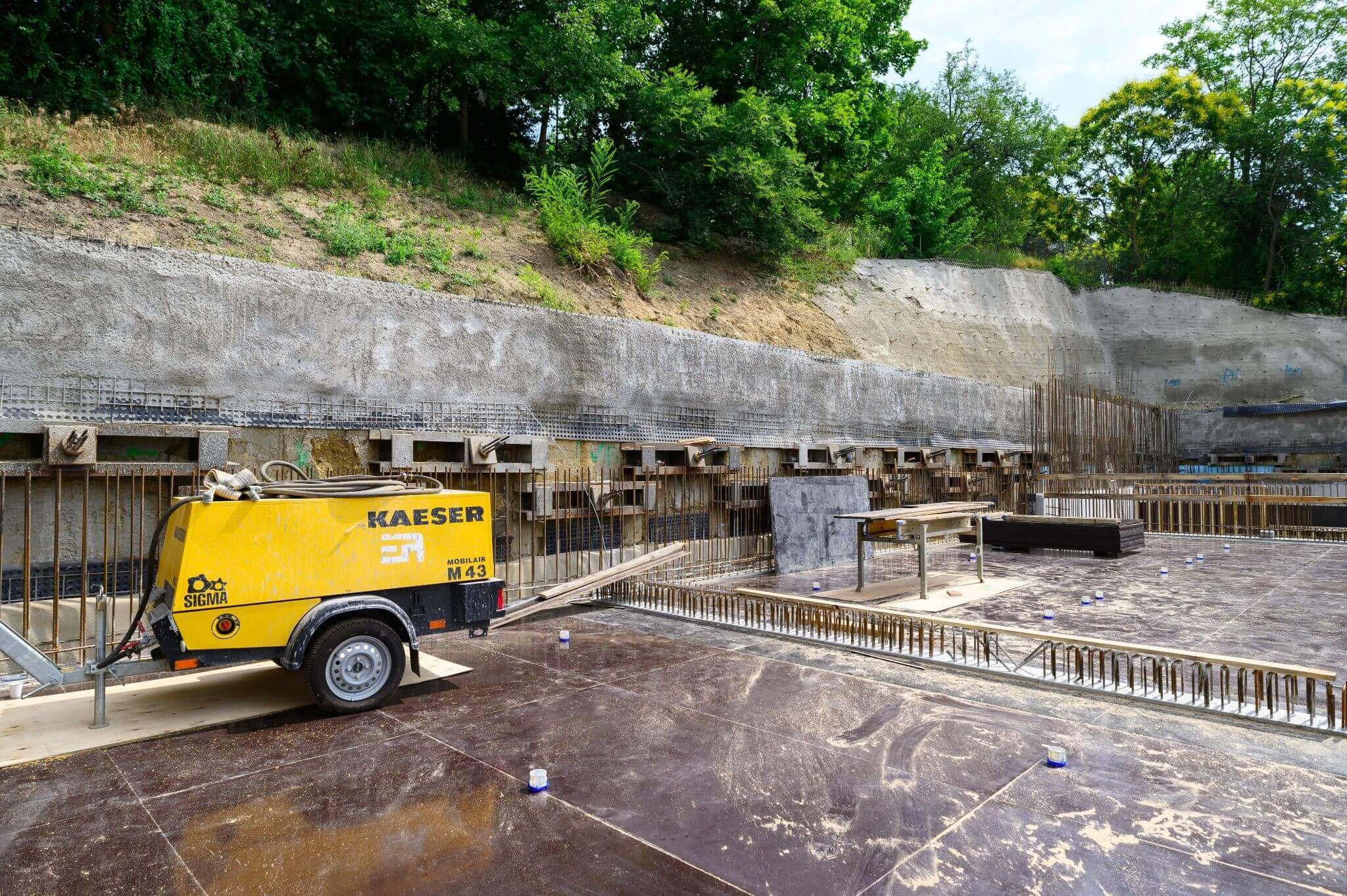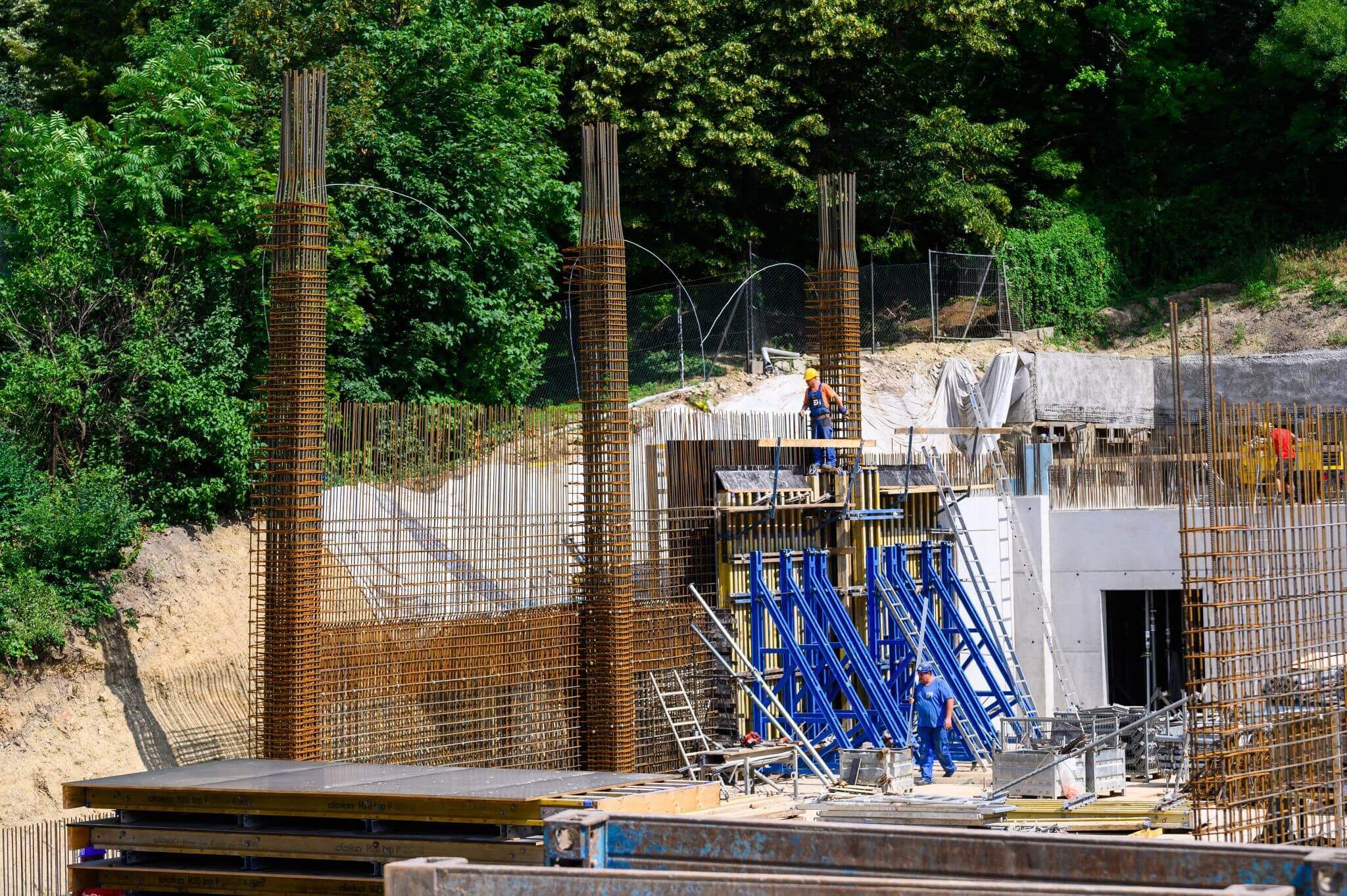 Itt is jelentősek a kihívások: az április végén elkezdett munka nem egy klasszikus mélygödrös, résfalas alapozásra épül, hanem cölöpsorral van megtámasztva a hegyoldal.