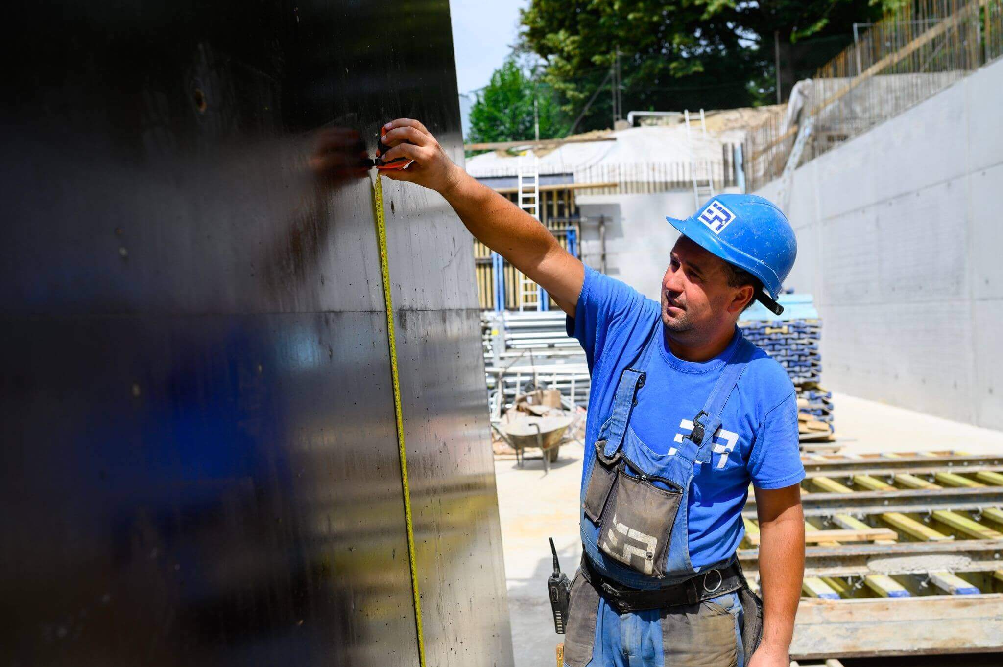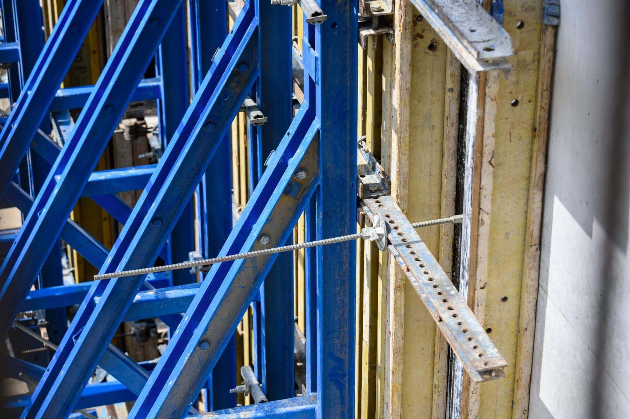 Nagy odafigyelést igénylő feladat az ÉPI szakemberei számára, hogy ahogyan a hegyoldal véget ér és a cölöpsor elemei rövidebbek lesznek, majd elfogynak, úgy kell egyoldali falzsaluzásból kétoldalira váltani. Van olyan falszakasz, ahol cölöp tetején és az oldalánál is kell zsaluzni, miközben a belső oldalon egyoldali falpillérek vannak.