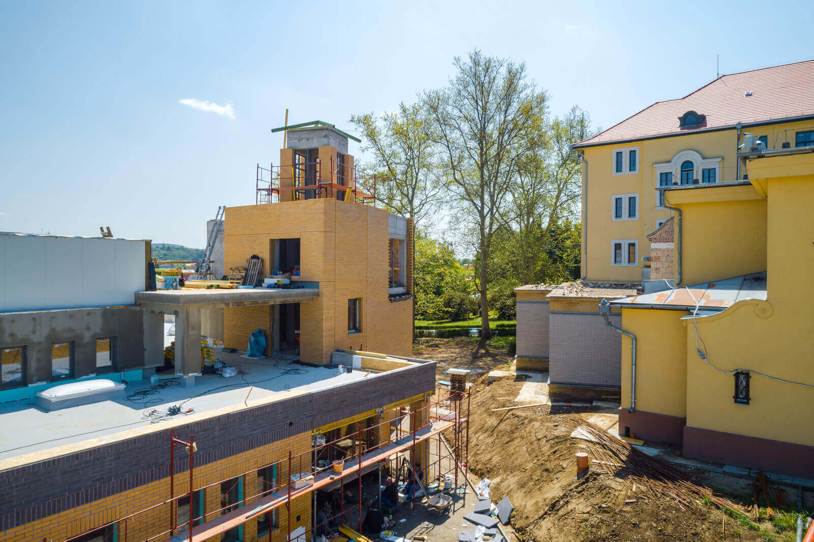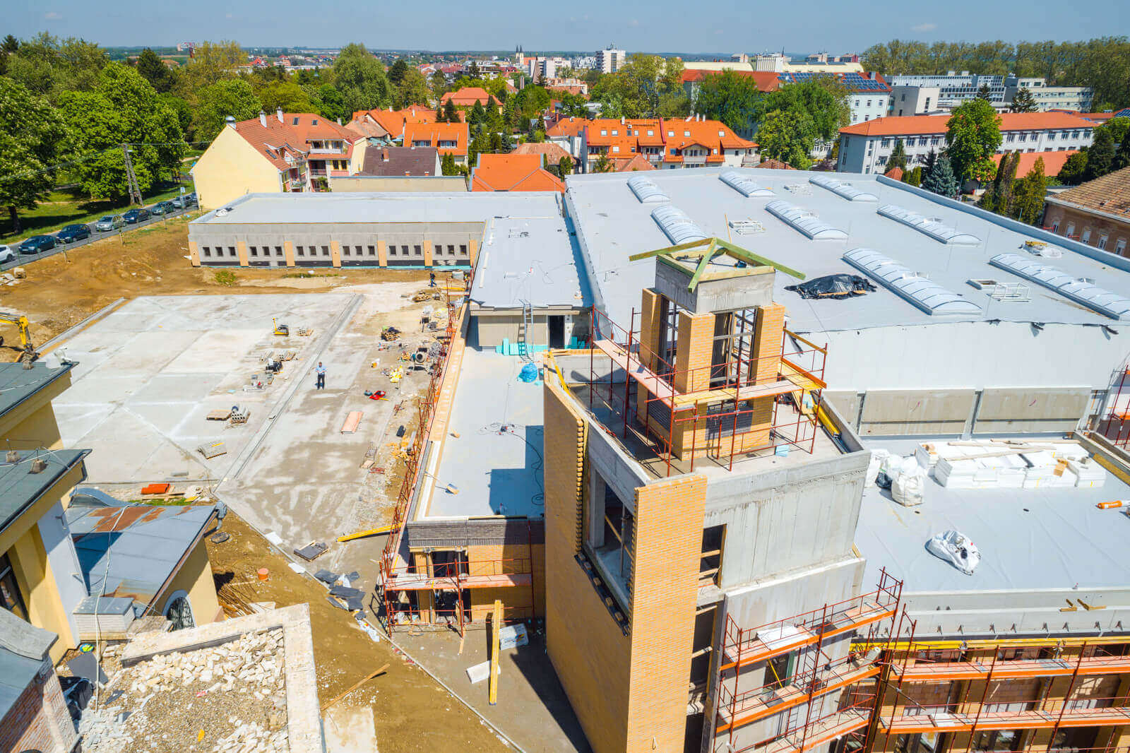 „A Mindszenty iskola új épületeinek szerkezete áprilisra elkészült, ezután megkezdődhetettek a belső szakszerelések, valamint a homlokzati és hőszigetelési munkák” – mondta el az igazgató. Hozzátette, Becze Tamás projektvezető irányításával a munkaterületen több mint száz fő dolgozik egyszerre.