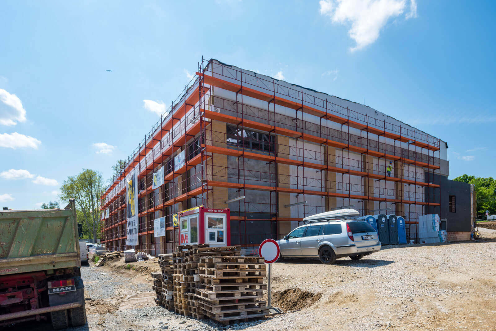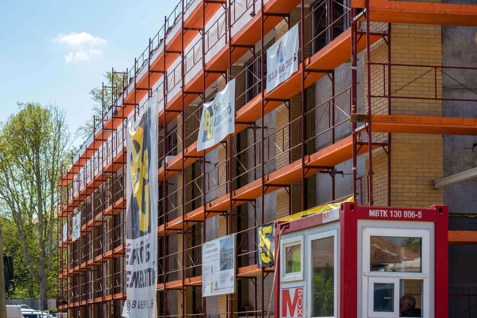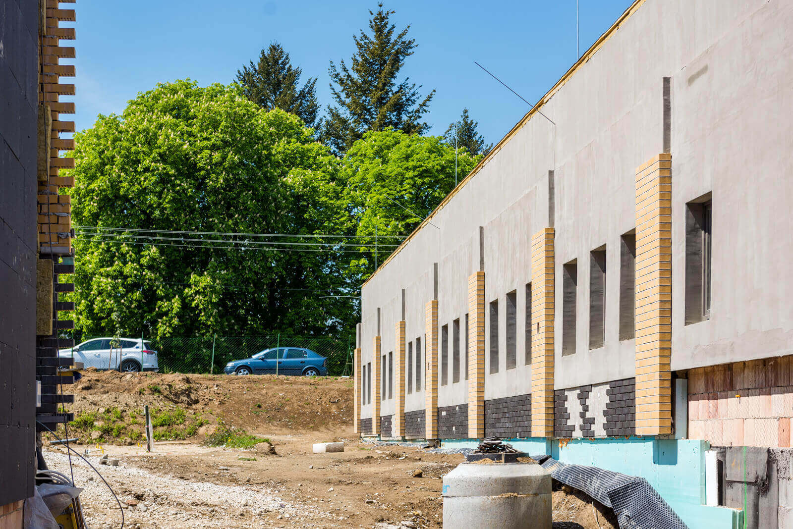 Ezzel párhuzamosan az épületnek a külső munkái is előrehaladott állapotot értek el: „Mind a négy homlokzat megkapta a hőszigetelő vakolatrendszert és a burkoló téglát, illetve nyílászárók beépítése is megtörtént” – árulta el Varga Ignác.