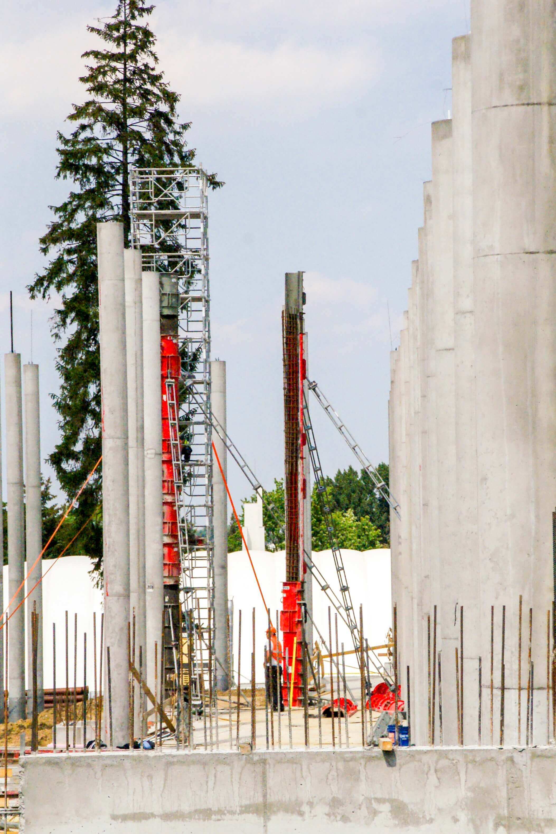 Az építkezésen a mintegy 8150 négyzetméternyi vasbetonfal zsaluzata a nagytáblás Mammut 350 falzsalu-rendszer 3 méter magas – jellemzően 300x250 cm-es – elemeivel készült.