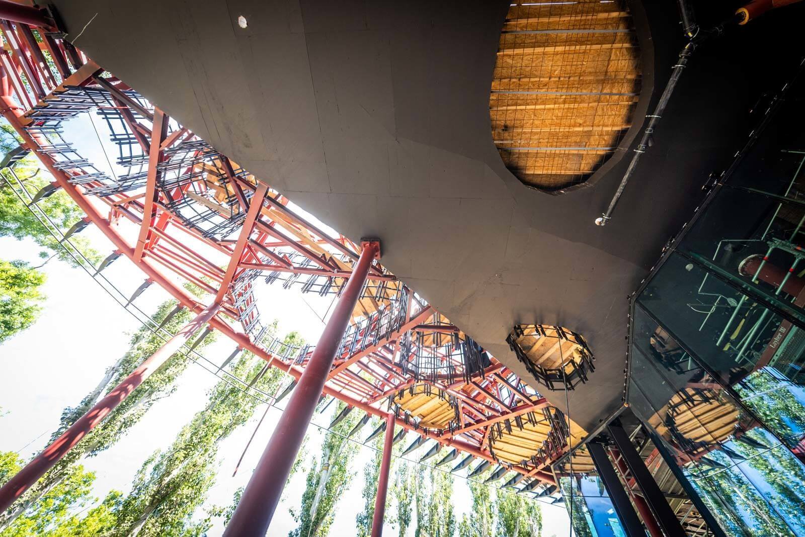 Az építmény különleges, összetéveszthetetlen látványa mögött Magyarországon eddig nem látott tervezői és mérnöki megoldások sorozata húzódik meg.